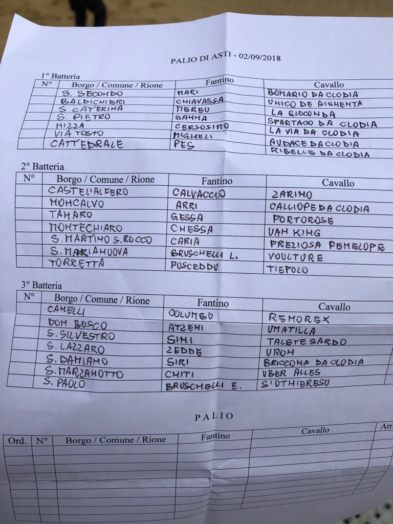 Palio di Asti, ecco le tre batterie in programma. Curiositá: per la prima volta c’é anche un fantino a sfilare. Giuseppe Zedde detto Gingillo, reduce dai trionfi del Palio di Siena e Piancastagnaio, che corre su Uroh per San Lazzaro.