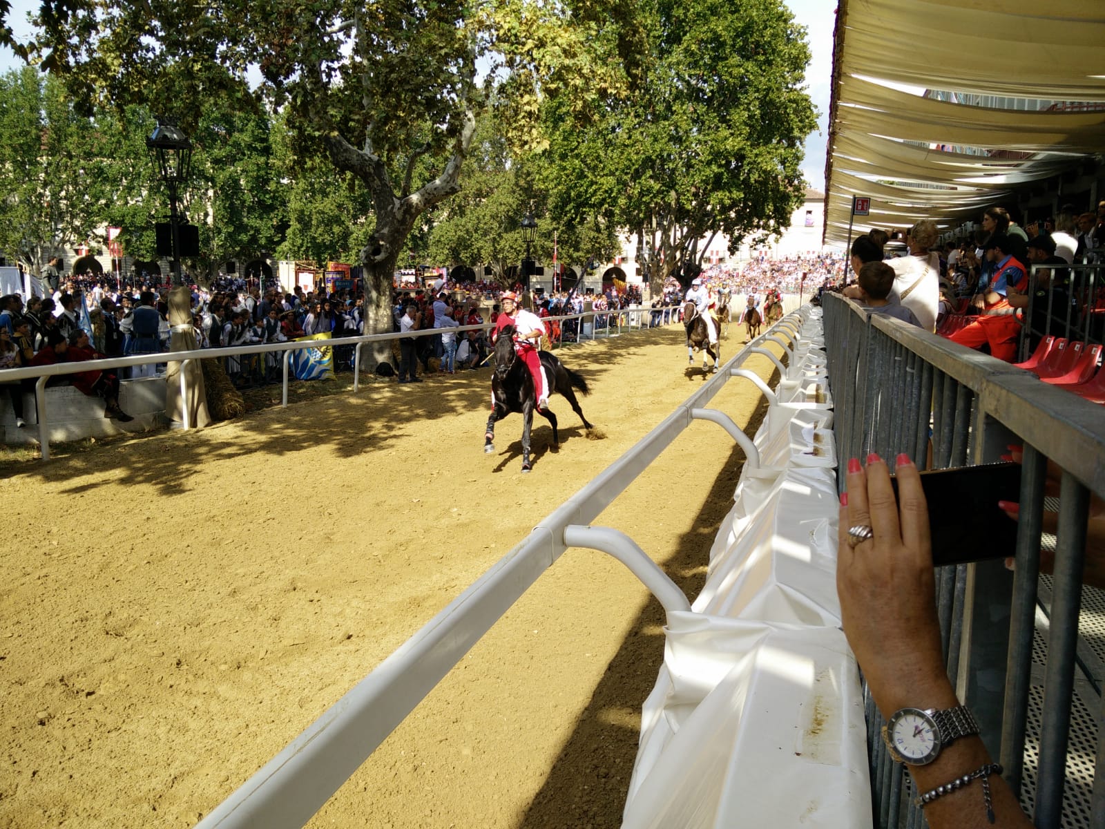 Palio di Asti, prima batteria: a passare sono Andrea Mari detto Brio su Bomario su Clodia per S. Secondo, Pes su Ribelle da Clodia per Cattedrale e Alessandro Cersosimo per Nizza su la Via da Clodia.