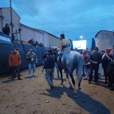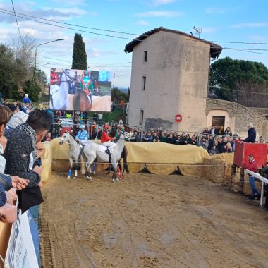 Tre cavalli dal manto grigio hanno disputato la finale del Palio di Buti in onore di Sant’Antonio. A vincere la contrada di San Francesco con il fantino Gavino Sanna sul cavallo Beniamino, il campione di scuderia Atzeni Team. Nessuna possibilità per le altre due contrade, La Croce, con Carlo Sanna detto Brigante e Orizzonte da Clodia che è arrivato secondo e Pievania, con Alessandro Fiori e Selvaggio da Clodia che si è piazzata al terzo posto.