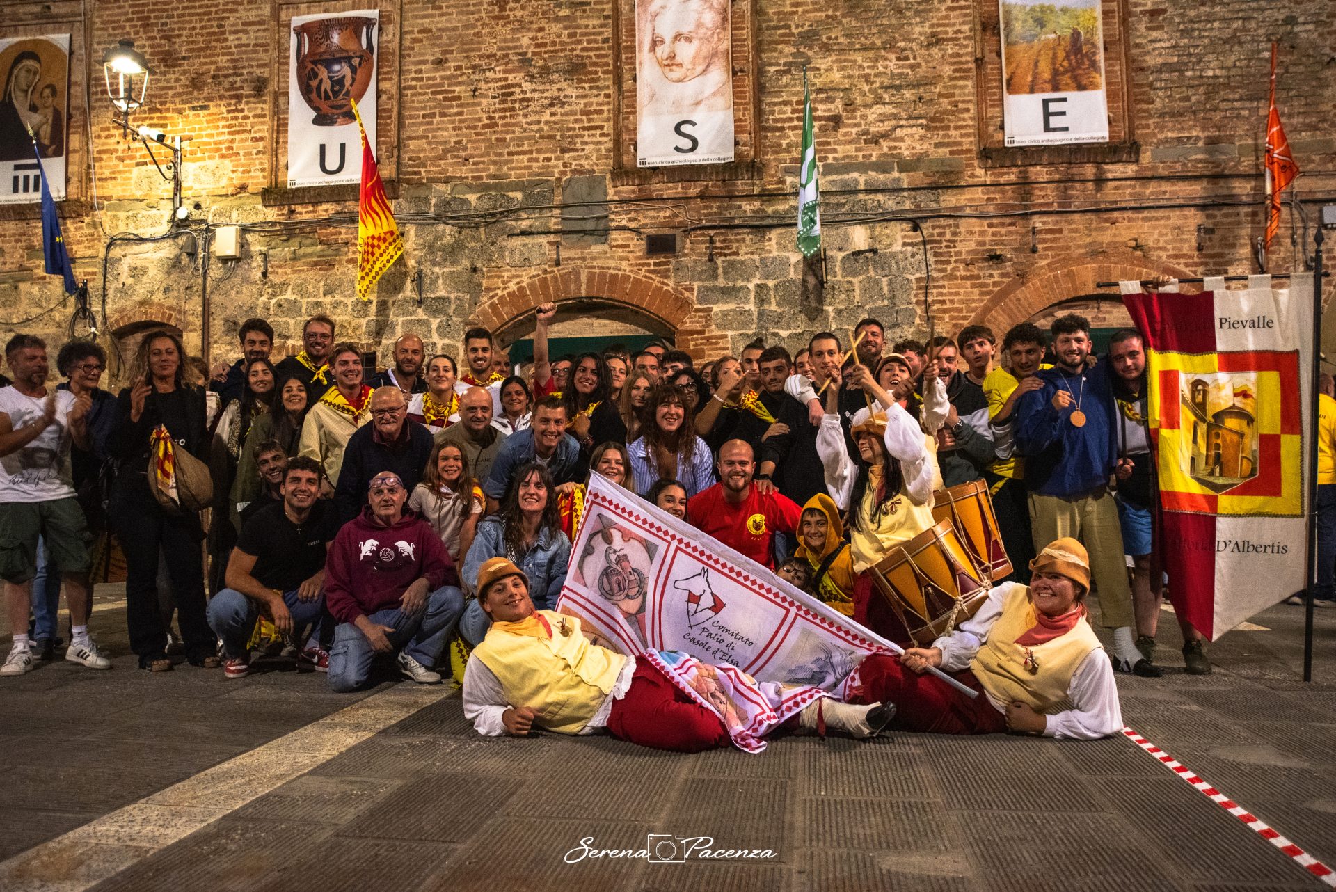Grandi festeggiamenti per la Contrada Pievalle che si è aggiudicata il Vessillo 2025 a Casole d’Elsa. Un trionfo particolarmente significativo poiché rappresenta la prima vittoria per tutti e quattro i giovani protagonisti dell’esibizione.