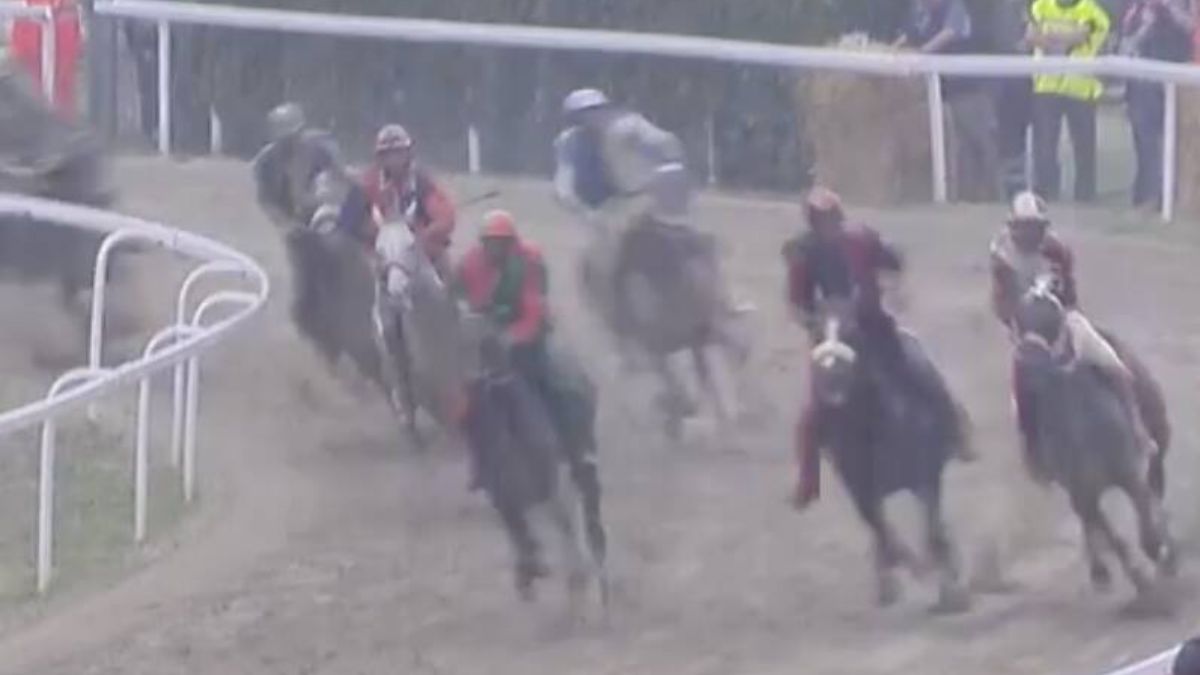 Gavino Sanna con il cavallo Adone da Clodia vince il Palio di Fucecchio per il rione Borgonovo .