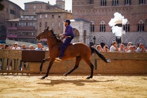 Il Nicchio ha vinto la quarta prova del Palio del 2 luglio, con Elias Mannucci detto Turbine su Akida. Partenza veloce anche questa stamattina, anche se un po’ “giovane”. Il più pronto è Enrico Bruschelli nella Pantera, che con Viso d’angelo sfila via davanti a tutti, seguito dal Valdimontone e dalla Civetta, mentre le contrade nella parte bassa del canape restano ferme. La Pantera resta in testa fino al primo Casato, quando passa la Lupa, con Andrea Coghe detto Tempesta che spinge Zenios. Poi un nuovo avvicendamento tra Lupa e Pantera, che fa l’andatura fino al secondo giro al Casato, quando dalle retrovie arriva il Nicchio che passa in testa e va a vincere la prova. Tante le contrade che hanno provato spunti nell’arco dei tre giri, in vari punti della pista.