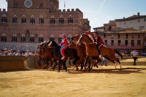 Nessuna variazione per quanto riguarda le accoppiate che si sono formate fin dalla prima prova e che stamani sono entrate tra i canapi nell’ordine inverso rispetto alla terza prova di ieri sera (ordine d’estrazione delle Contrade per l’assegnazione dei cavalli).