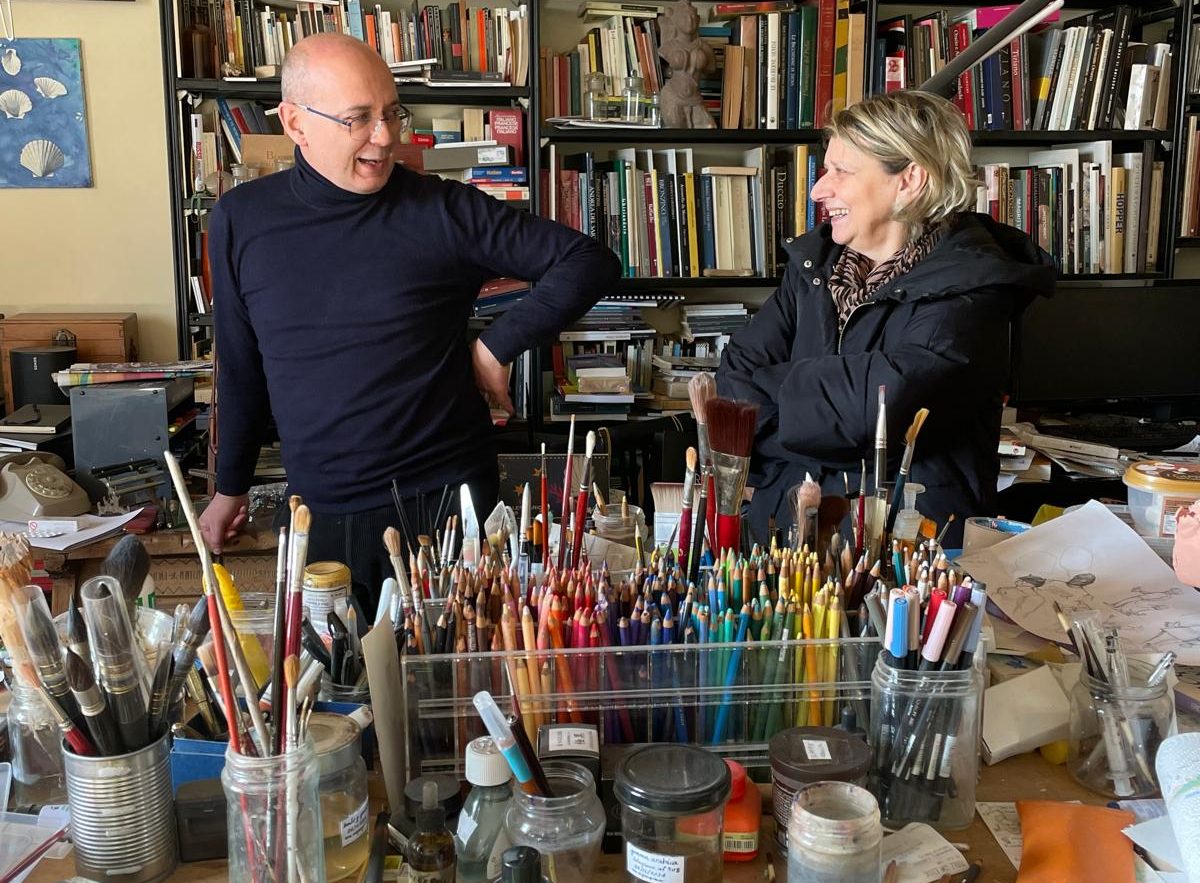 L’artista ha ricevuto seta e telaio questa mattina, venerdì 7 marzo, da parte di alcuni dipendenti dell’amministrazione comunale.
