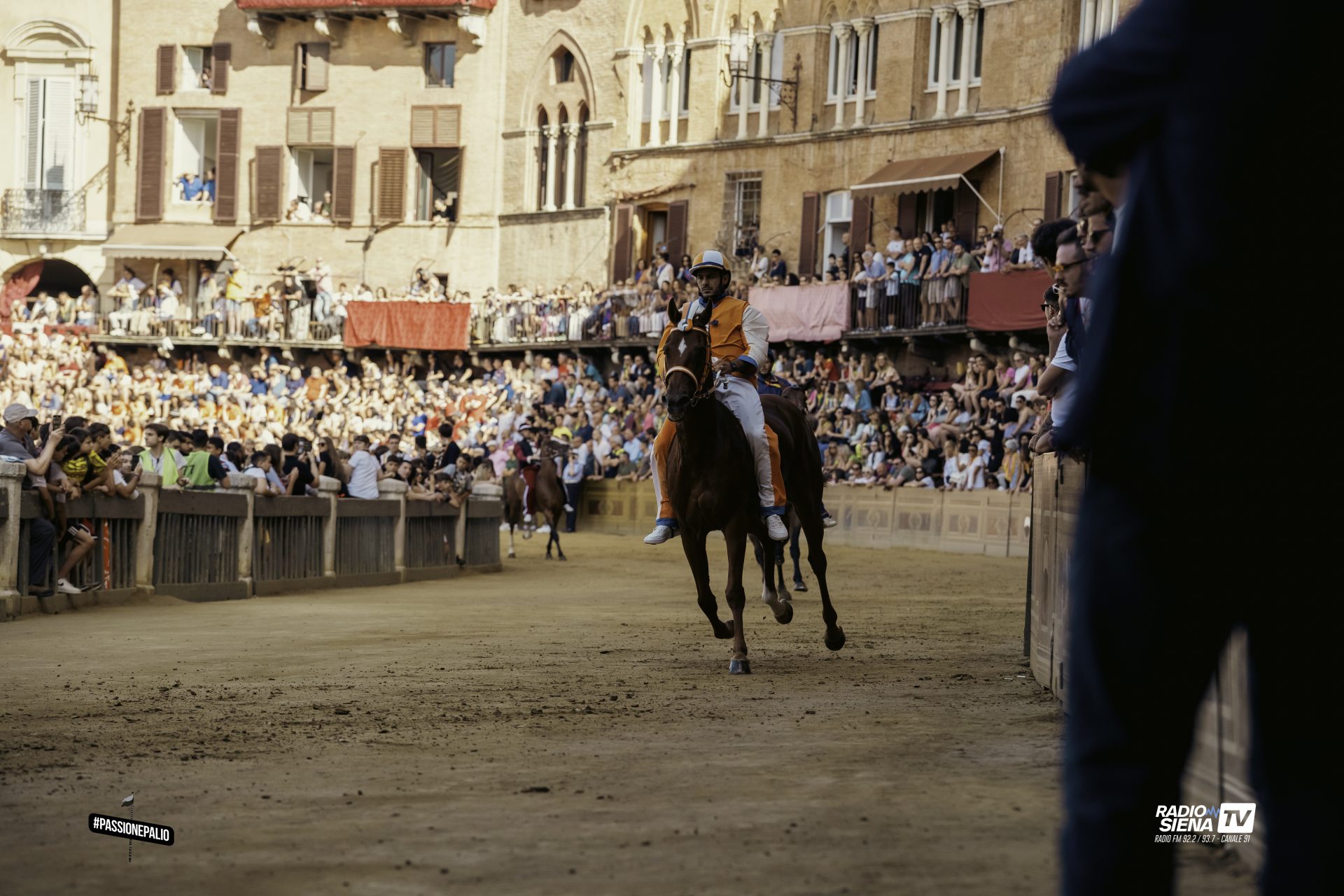 Con il Leocorno in Piazza, c’era anche la rivale, la Civetta: “E’ stata una sfida sana – ha affermato Grandine – nelle regole e giusta. Io mi preoccupavo di Tamurè (che indossava il giubbetto della Civetta) e pensavo a fare bene io. E lo stesso vale per lui. Secondo me il cavallo della Civetta aveva più chance, come ha fatto vedere nelle prove, di partire; noi meno, ma poi è successo al contrario”. E a proposito, il Murtas spende parole di apprezzamento per Ares Elce, cavallo con il quale ha corso: “Ares Elce è un cavallo molto positivo per essere alla sua prima esperienza. E’ un cavallo da Palio”. Infine Sebastiano Murtas, congedandosi, si augura di tornare in Piazza del Campo per la imminente Carriera di agosto.
