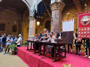 Con estrema emozione, che raramente mostra, il sindaco di Siena Nicoletta Fabio ha presentato il Drappellone di Francesco De Grandi, svelato stasera con la tradizionale cerimonia nel Cortile del Podestà. Ecco il suo discorso