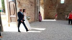 Il matrimonio, che doveva svolgersi un anno fa, era stato rinviato causa Covid. Un centinaio gli invitati, tra i quali molti personaggi del mondo del Palio, che dopo la cerimonia si sono poi trasferiti nella location ad Asciano per il rinfresco.