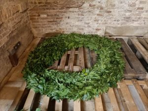 Andiamo per gradi, i festoni li notiamo durante il Corteo storico che entra in Piazza al primo rintocco di Sunto prima della Carriera. Si trovano nelle due file dei sei paggi che indicano la separazione tra le dieci Contrade partecipanti alla corsa e le sette che non corrono. Ma sono presenti anche nel Carroccio, che entra in Piazza tirato da due paia di buoi di razza chianina guidati da quattro bovari. Su di esso sono issati il Palio e la Balzana, simbolo di Siena. Tutto deve essere quindi perfetto, fin dalle prime treccie di alloro. Per trent’anni a compiere il gesto di intrecciare con pazienza le corone di alloro per i festoni era stato Roberto. Lo stesso ex sindaco De Mossi lo ha salutato una volta andando in pensione. Oggi la tradizione è nelle mani di Maurizio e Luigi.