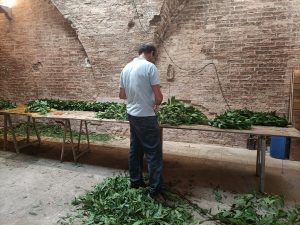 Un lavoro lunghissimo e delicato. “Finiremo il 15 e abbiamo iniziato già da due giorni – spiega Maurizio Pangallozzi- prima prepariamo la frasca di alloro a piccoli pezzi, poi li riduciamo ancora di più e poi l’intrecciamo insieme -aggiuge – . La scadenza? Il giorno della prova generale quando consegniamo il lavoro fatto all’ufficio economato che pensa a custodirlo e a dare gli ultimi ritocchi, ma non dobbiamo solo occuparci dell’alloro, in questi giorni siamo insieme ai nostri colleghi in Piazza per il consueto lavoro che ogni Carriera facciamo”. Dunque, non hanno tempo da perdere ma Maurizio si concede comunque una pausa per terminare l’intervista.