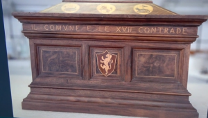 Una bella sorpresa per le Contrade e il mondo del Palio. Sono state scoperte in un museo Roma le bandiere delle 17 consorelle, riposte in uno scrigno di legno, che nel 1938 il Comune donò al Re Vittorio Emanuele III e successivamente il Quirinale, nella persona del presidente Gronchi, ha donato a una struttura museale. La notizia è stata data durante l’incontro tra Ministero della Cultura e Priori di oggi. Si tenterà di rimettere in sesto le bandiere e di portarle a Siena, per adesso siamo nel campo delle idee appartenendo esse al museo che le conservava.