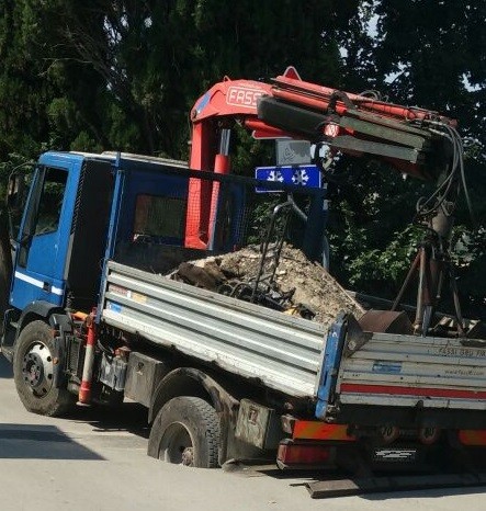 La ruota posteriore del camion è sprofondata ed è stato necessario l’intervento dei vigili del fuoco per liberare il mezzo e per mettere in sicurezza la carreggiata.