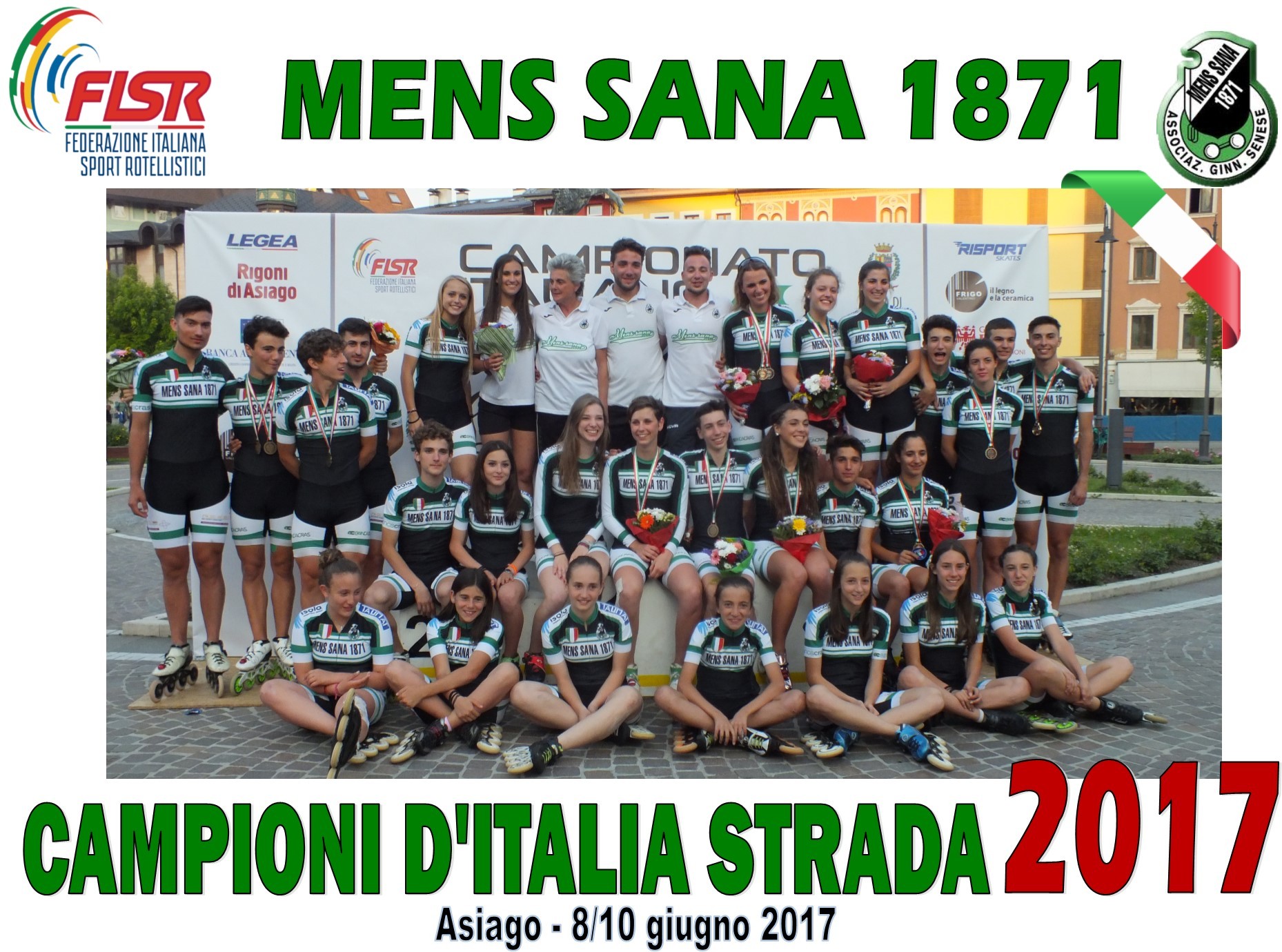 Il Direttore Sportivo della Polisportiva Mens Sana, Gianluca Marzucchi , presente ad Asiago, commenta “Questi risultati certificano come la Squadra di PattinaggioCorsa della Mens Sana stia facendo la storia di questo sport in Italia. Una pagina sportiva che non sarà facile replicare. Il grandissimo merito va al nostro Staff Tecnico ma soprattutto al Direttrice Tecnica Laura Perinti. Con Lei siamo riusciti a costruire qualcosa di formidabile e, per adesso, inarrestabile!!! Una squadra supportata da un grande gruppo di Dirigenti che ruotano intorno alla disciplina, aiutati dai tanti genitori che sono la batteria dei roller biancoverdi. Un grande gruppo di Atleti, il DREAM TEAM!!! Sempre di più “La Squadra dei sogni” invidiata e temuta”. Complimenti a tutti i protagonisti di questo ennesimo, ma mai assolutamente scontato successo, dove lo stato basico del “rivincere” è sicuramente l’organizzazione che, senza timore di essere smentiti, è presa come esempio da molte altre Società d’Italia. Una “disciplina” che crea gruppo, affiatamento, attaccamento ai nostri colori. La classifica parla da sola: è il gruppo che vince e non il singolo. Adesso l’obiettivo è la conquista del secondo triplete come nel 2016.”