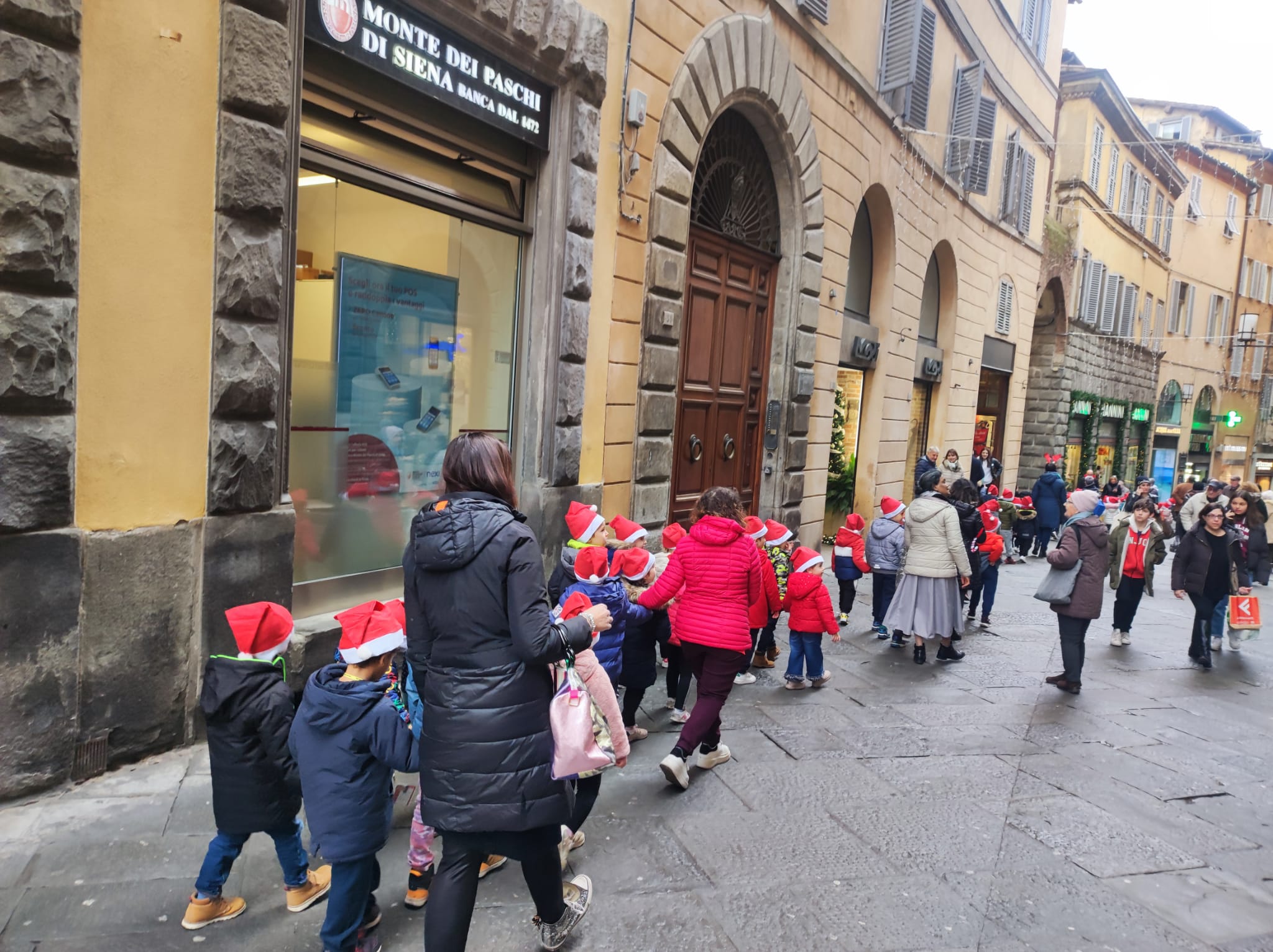 Piccoli Babbo Natale in giro per Siena, gita in centro della scuola d'Infanzia "Il Castagno"
