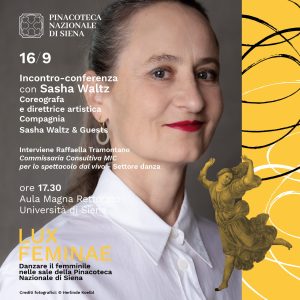L’incontro aprirà la rassegna di “LUX FEMINAE – Donne e Madonne – Danzare al femminile nelle sale della Pinacoteca Nazionale di Siena”: un ambizioso progetto artistico di interazione tra danza contemporanea, storia dell’arte e spazi museali.
