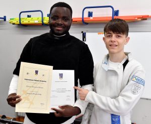 Komlan Efanam Miawotoe: trentatre anni, nazionalità Togolese, dopo aver praticato scherma nel suo Paese e in Senegal, dieci anni fa è approdato a Siena per motivi di studio dove ha conseguito sia la laurea triennale in Scienze del servizio sociale e quella magistrale in Relazioni internazionali e cooperazione allo sviluppo. Appena arrivato aveva varcato le porte della palestra di scherma dicendo che aveva un sogno come atleta “difendere i colori del suo Paese”; c’è riuscito, in Coppa del Mondo ha difeso i colori del Togo cinque volte, tre nel Gran Prix di Torino, una nel super Gran Prix di Los Angeles e una in quello di Budapest ed ha partecipato a numerosi Campionati Africani. Allora esordì che ne aveva un altro, diventare Maestro di Scherma e così è stato , con un cammino che è iniziato anni fa, raggiungendo le qualifiche di Istruttore Regionale e poi Nazionale e svolgendo i tirocini previsti dal regolamento e sottoscritti dal Maestro Daniele Giannini, suo Tutor ed infine superando l’esame alle tre armi discutendo la tesi, con relatore il Maestro Lio Bastianini, dal titolo L’ALLIEVO E Il MAESTRO: L’aspetto personale, le qualità tecniche e tattiche di un buon allenatore, conseguendo così, con il voto più alto di tutti i partecipanti alla sessione, il titolo a cui aspirava dicendo ai suoi ragazzi cussini “che bisogna sognare ed impegnarsi lavorando duramente per raggiungerli”.