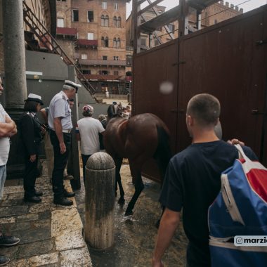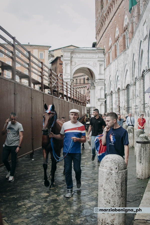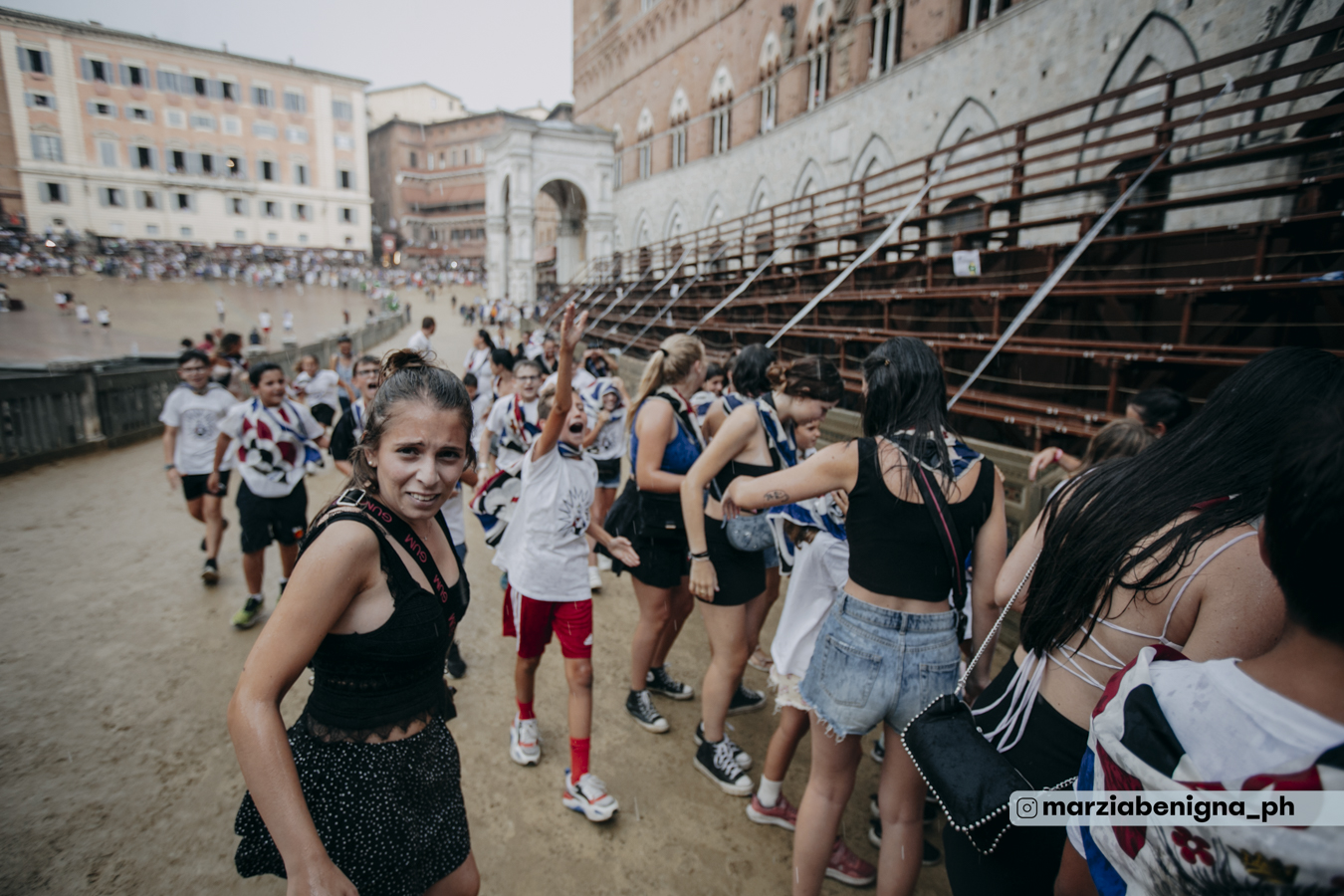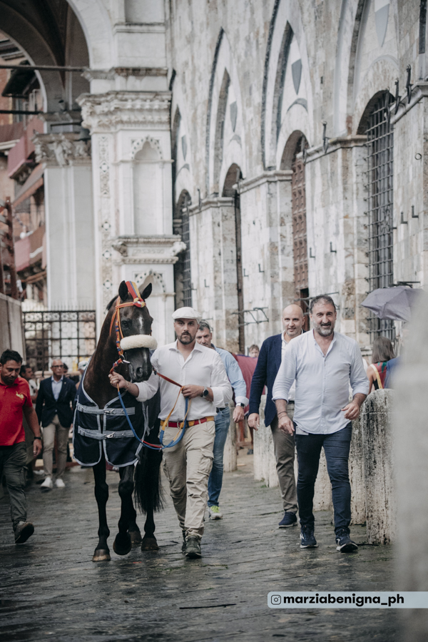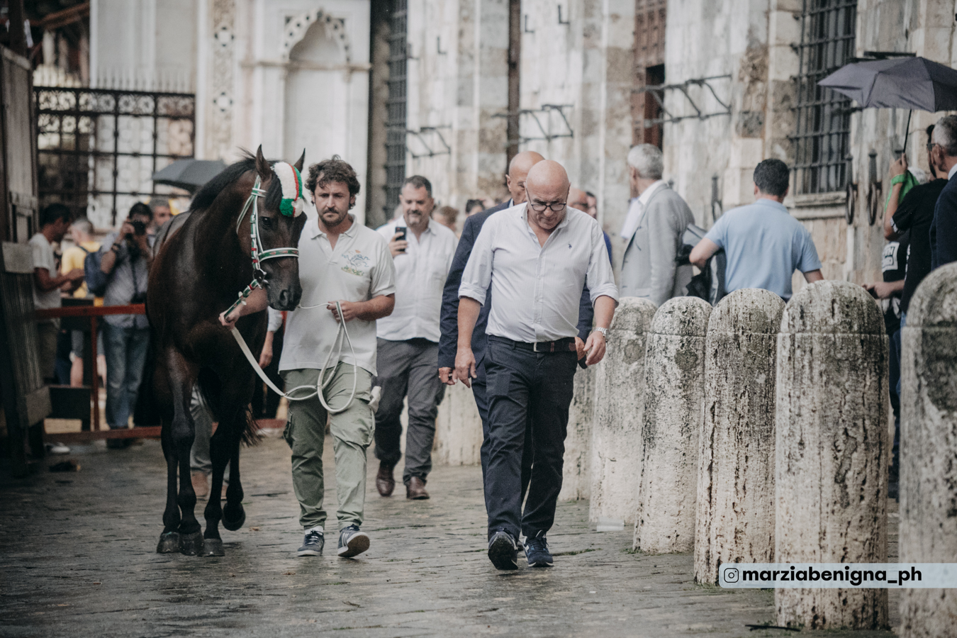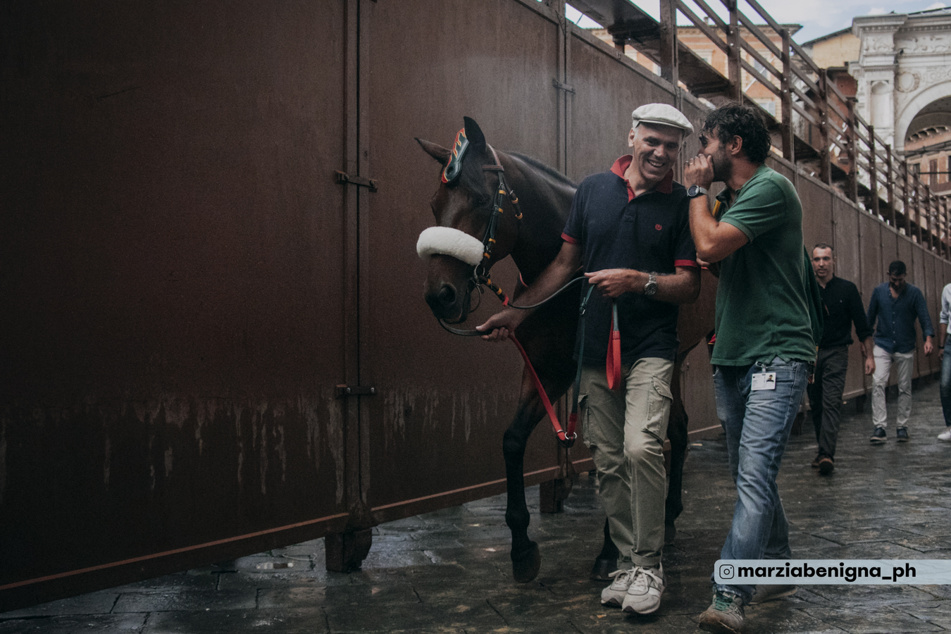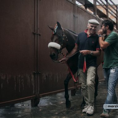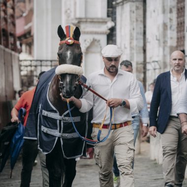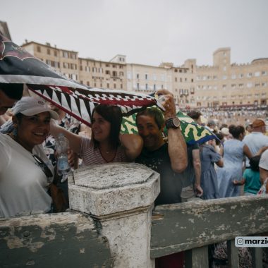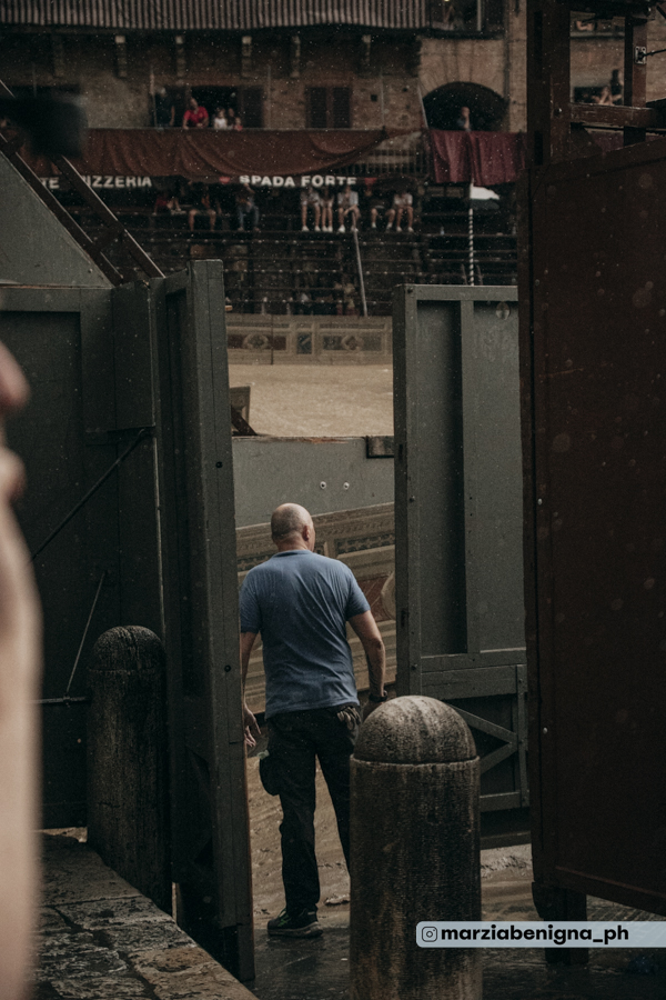 Un nubifragio che si è abbattuto su Piazza del Campo nel pomeriggio, ha sconvolto il programma del Palio, costringendo all’annullamento della terza prova (ed anche della quarta di domani mattina). I dieci cavalli, che avevano già raggiunto l’entrone sono rimasti bloccati per oltre un’ora e poi sono usciti da Via Duprè, in ordinata fila indiana. Nella nostra gallery alcuni scatti per raccontare questo pomeriggio rivoluzionato dalla pioggia.