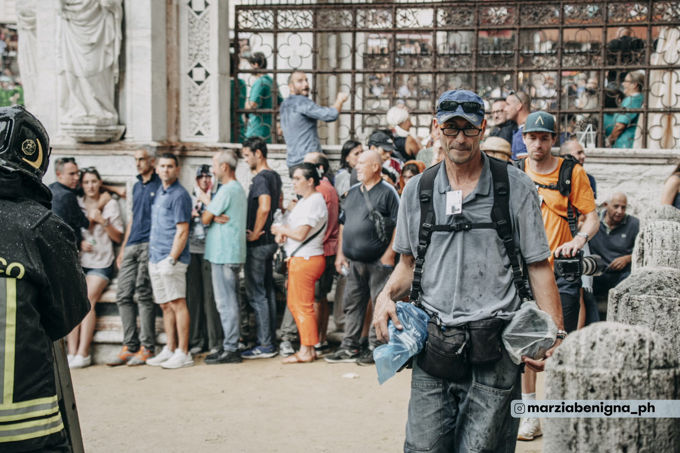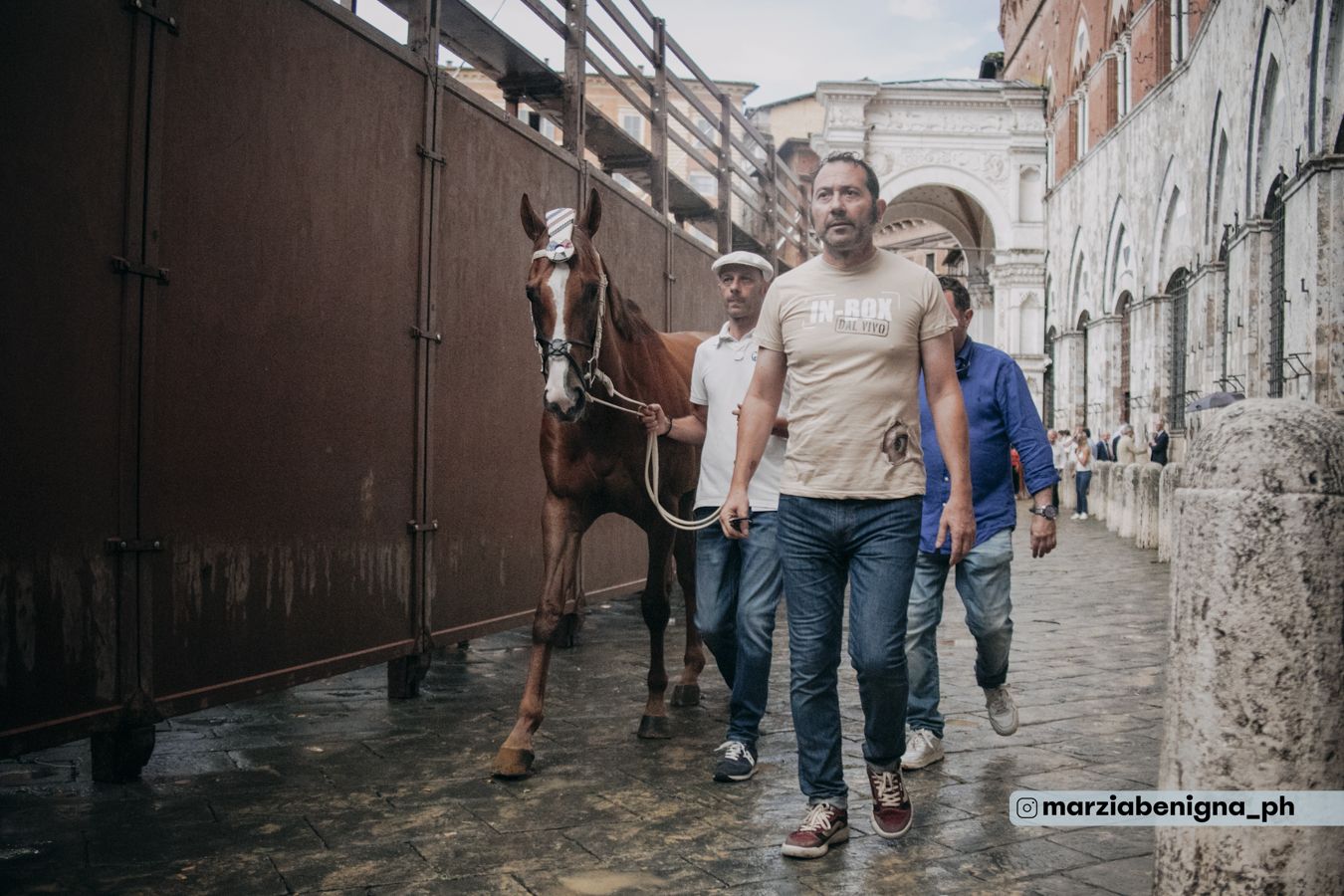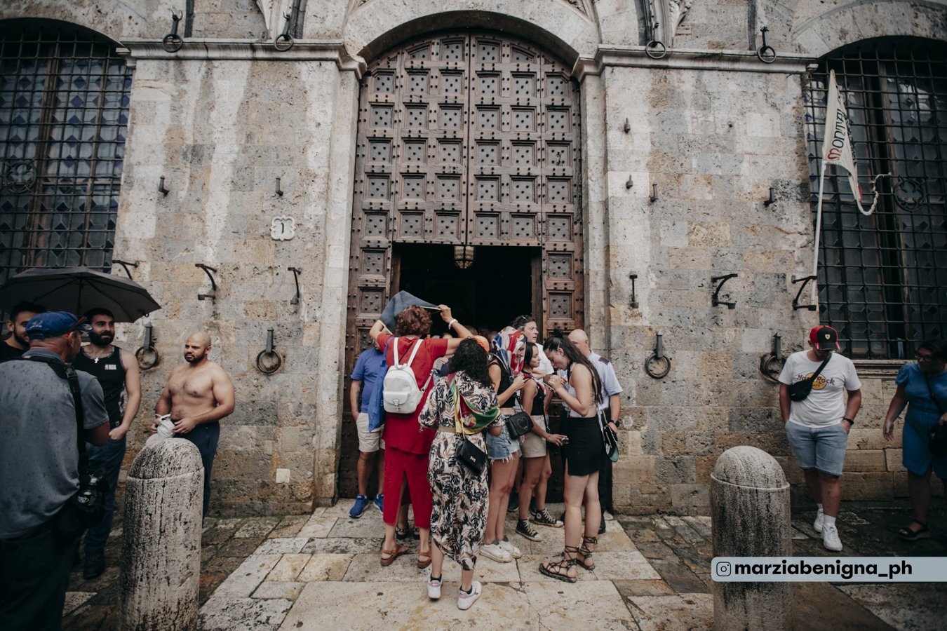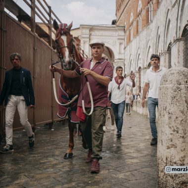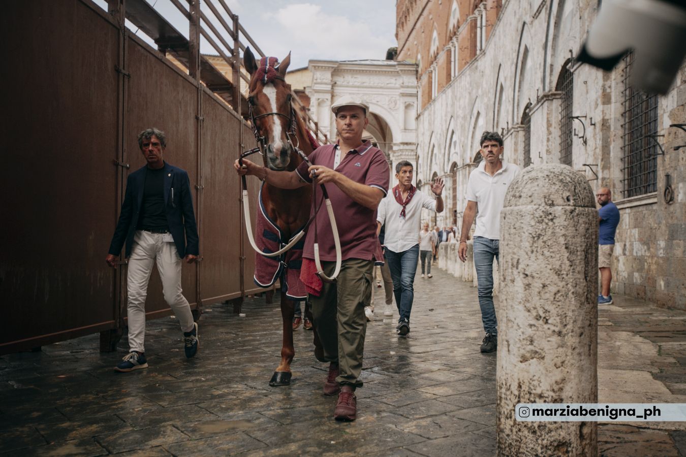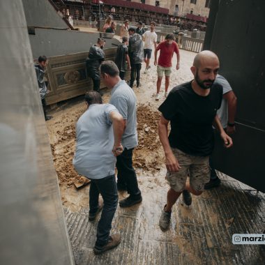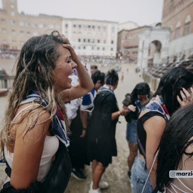 Un nubifragio che si è abbattuto su Piazza del Campo nel pomeriggio, ha sconvolto il programma del Palio, costringendo all’annullamento della terza prova (ed anche della quarta di domani mattina). I dieci cavalli, che avevano già raggiunto l’entrone sono rimasti bloccati per oltre un’ora e poi sono usciti da Via Duprè, in ordinata fila indiana. Nella nostra gallery alcuni scatti per raccontare questo pomeriggio rivoluzionato dalla pioggia.