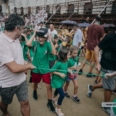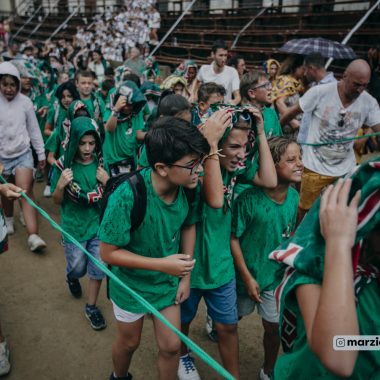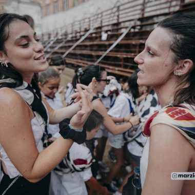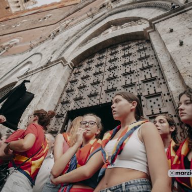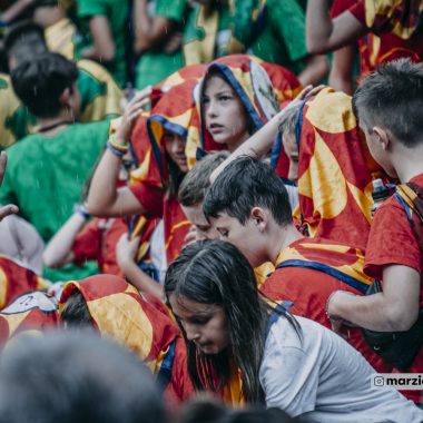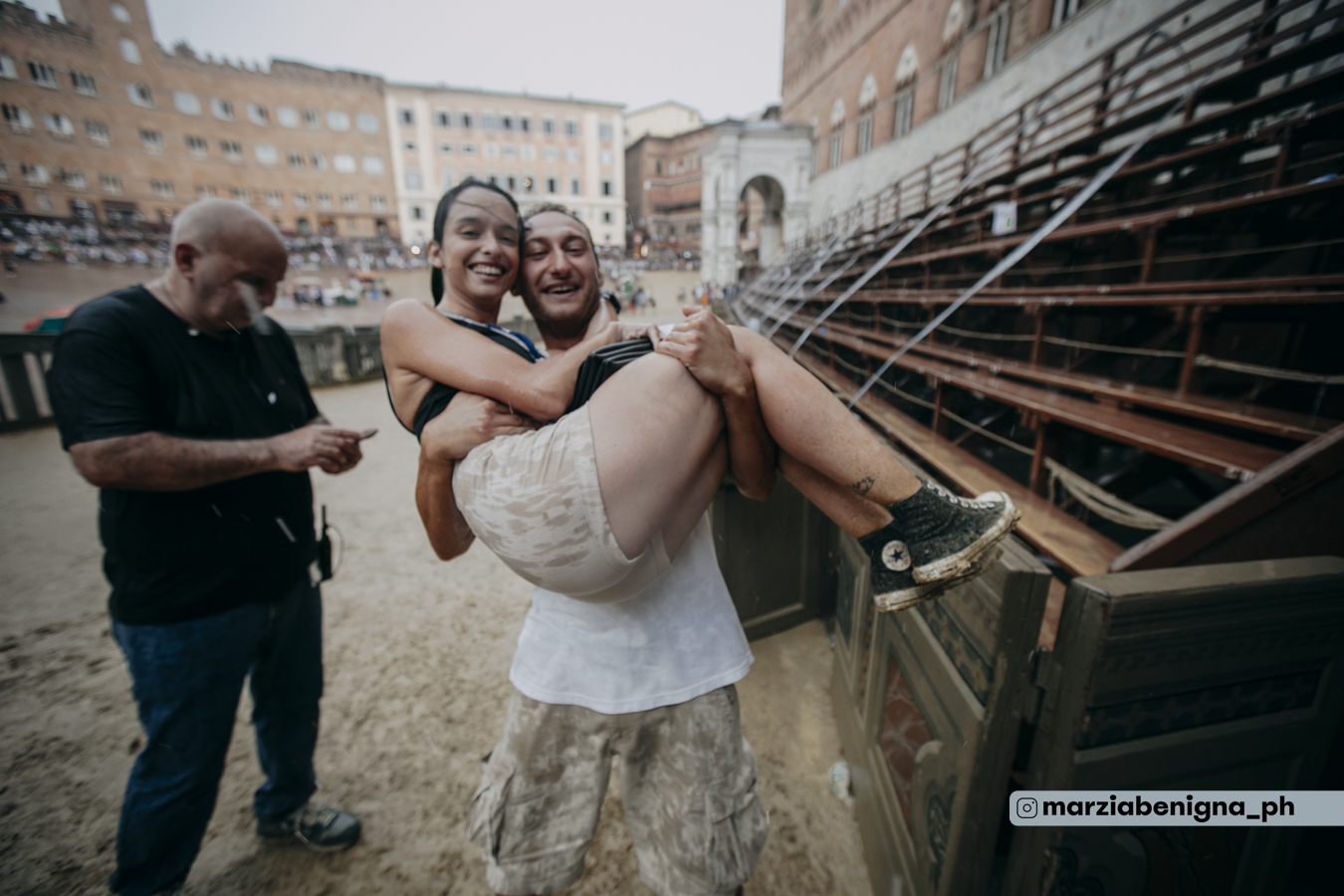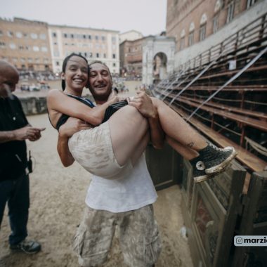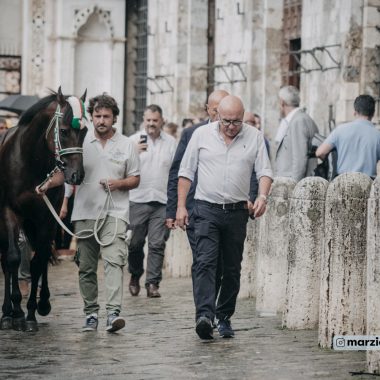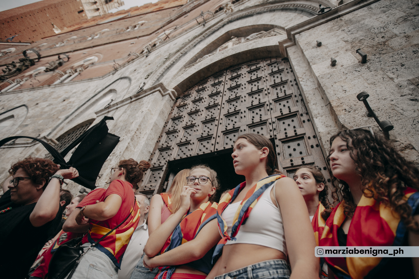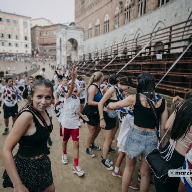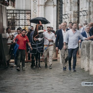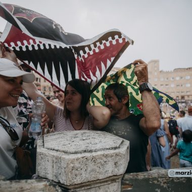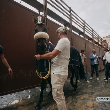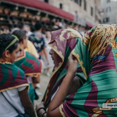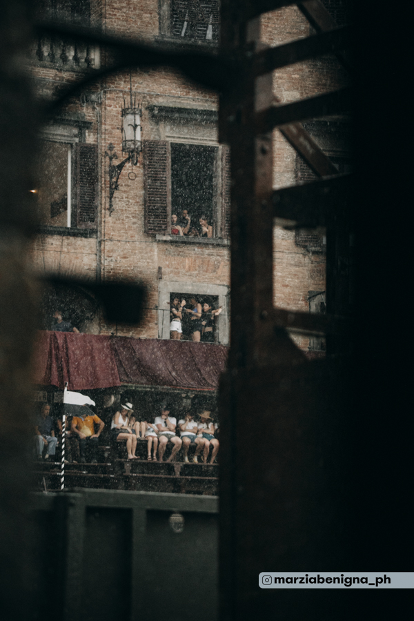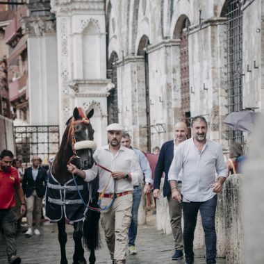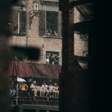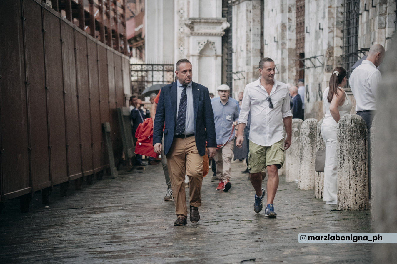 Un nubifragio che si è abbattuto su Piazza del Campo nel pomeriggio, ha sconvolto il programma del Palio, costringendo all’annullamento della terza prova (ed anche della quarta di domani mattina). I dieci cavalli, che avevano già raggiunto l’entrone sono rimasti bloccati per oltre un’ora e poi sono usciti da Via Duprè, in ordinata fila indiana. Nella nostra gallery alcuni scatti per raccontare questo pomeriggio rivoluzionato dalla pioggia.