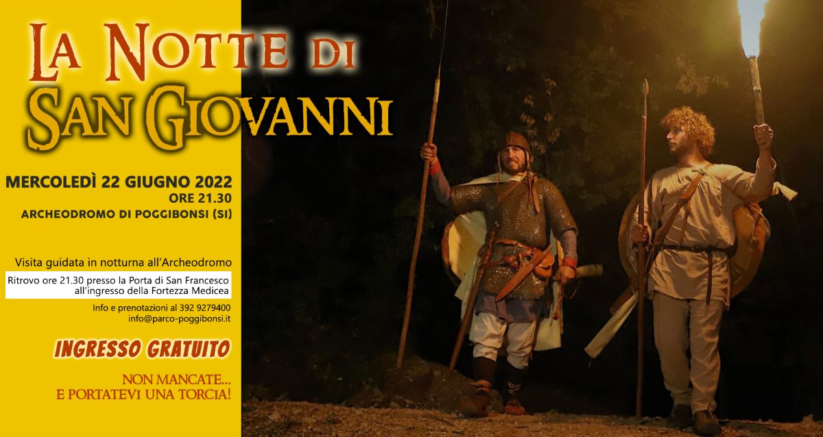 Visita guidata in notturna all’Archeodromo di Poggibonsi in programma per domani, mercoledì 22 giugno alle 21,30, con l’evento “La notte di San Giovanni”.