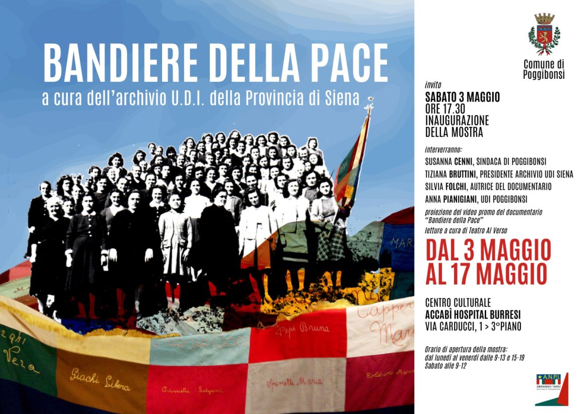 Le bandiere della pace sono frutto di una delle campagne lanciate dall’UDI nel secondo dopoguerra, che vide l’adesione di centinaia di donne dei circoli che si attivarono per ricamare il proprio nome su pezzi di stoffa poi cuciti insieme a formare bandiere multicolori. Grazie al lavoro dell’archivio UDI della provincia di Siena nasce la mostra e prima ancora il documentario dedicato alle bandiere della pace sul territorio. Sabato 3 maggio alle 17,30 si svolgerà l’inaugurazione della mostra con gli interventi di Susanna Cenni, di Tiziana Bruttini, presidente dell’Archivio UDI di Siena, di Silvia Folchi, autrice del documentario dedicato alla mostra, di Anna Pianigiani per l’UDI di Poggibonsi. Durante l’evento sarà proiettato il video promo del documentario “Bandiere della Pace” con letture a cura di Teatro Al Verso.