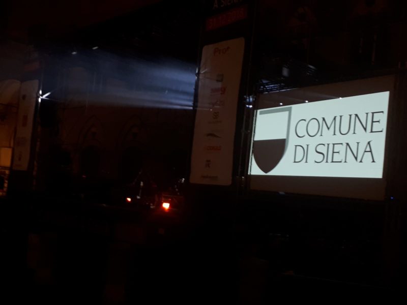 “In merito alla polemica sui social di eventuali loghi su Palazzo Pubblico il countdown ed i loghi degli sponsor – recita la nota – verranno proiettati come stabilito su uno schermo al lato del palco. Schermo che per non rischiare che venisse rovinato da umidità e per lasciare la visuale libera di Palazzo Pubblico è stato montato solo all’ultimo momento. Quello che girava ieri sui social era una prova fatta del proiettore dal tecnico”.