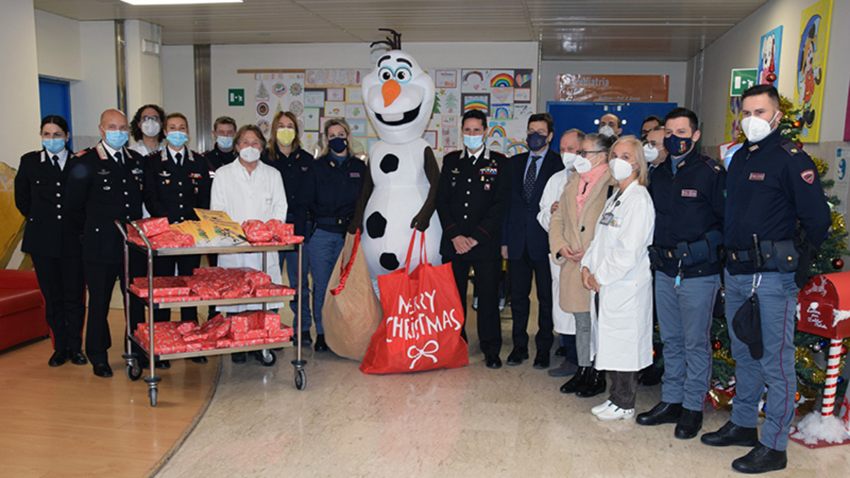 Un appuntamento all’insegna di gioia e allegria che si rinnova di anno in anno. È la tradizionale visita in ospedale dell’Arma dei Carabinieri e della Polizia di Stato in occasione del Natale: anche nel 2021 le forze dell’ordine si sono recate nel Dipartimento della Donna e dei Bambini dell’Azienda ospedaliero-universitaria Senese, accompagnati dal questore, Pietro Milone, e dal comandante provinciale dei Carabinieri di Siena, colonnello Nicola Ferrucci. Carabinieri e Polizia hanno consegnato ai coordinatori infermieristici i doni e tante sorprese per i piccoli pazienti dell’ospedale Santa Maria alle Scotte. A causa delle restrizioni anti Covid-19 non si è tenuta la tradizionale festa ma una semplice consegna dei doni, senza la presenza dei bambini, segno di massima attenzione alla salute di tutti e costante vicinanza ai piccoli pazienti.