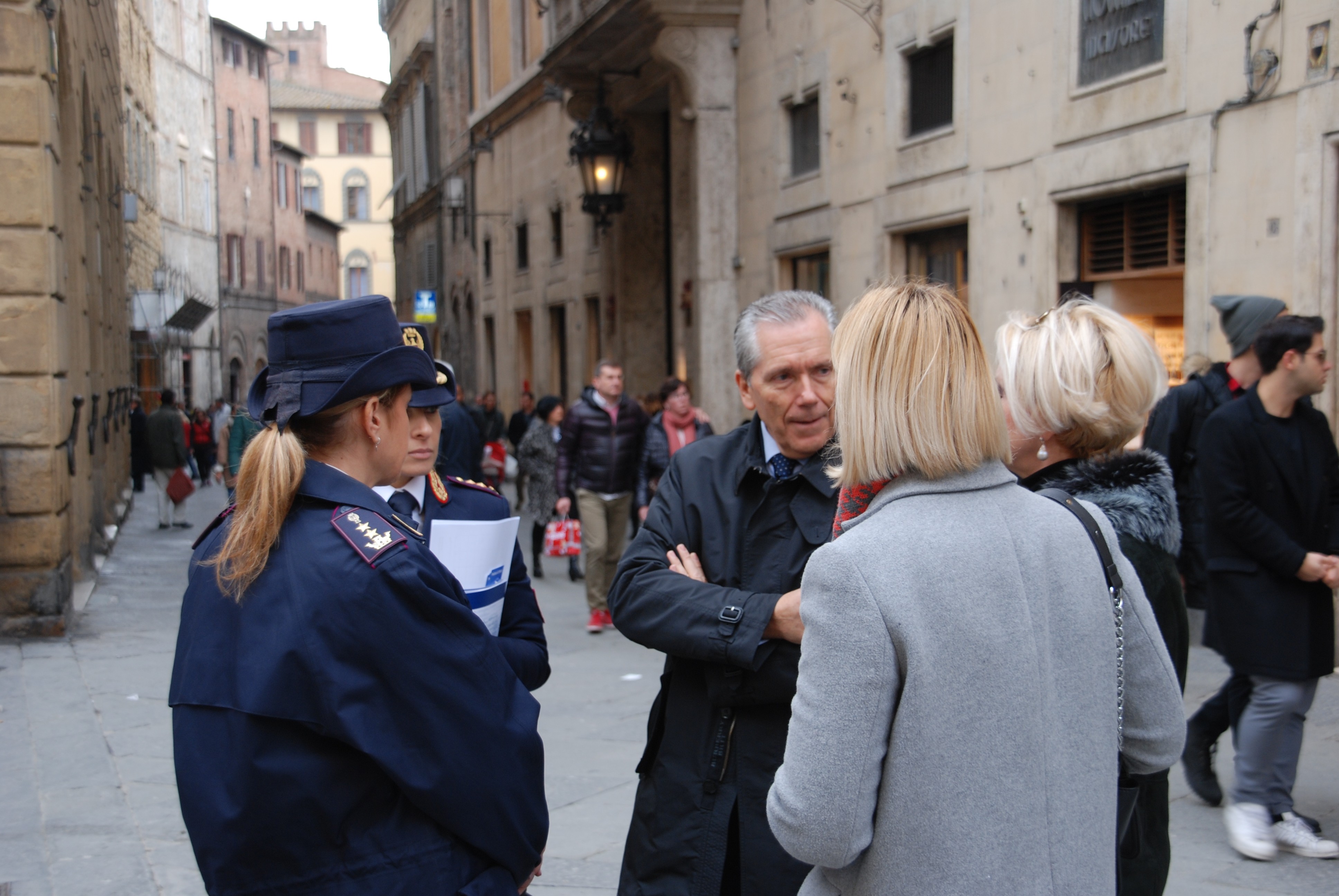 Un’altra mamma, di origine straniera, nel complimentarsi con il questore e il suo staff per l’iniziativa, ha voluto sottolineare, in presenza della figlia maggiorenne, come sia importante che la famiglia, la scuola e le Istituzioni seguano, soprattutto i più giovani, per costruire una cultura della legalità per gli uomini e le donne di domani. Dalle 9.30 alle 12.00, a cura del Commissariato di pubblica Sicurezza di Chiusi – Chianciano Terme, una postazione analoga è stata attuata in Piazza Dante, nei pressi della stazione ferroviaria. A Poggibonsi invece, l’iniziativa si terrà in Piazza Rosselli nel pomeriggio, a partire dalle ore 16.00 e fino alle 19.00 circa, organizzata dall’omologo Commissariato di Pubblica Sicurezza. In tutte le occasioni, sono stati distribuiti anche degli opuscoli informativi, realizzati dalla Direzione Centrale Anticrimine del Dipartimento della Pubblica Sicurezza e alcuni segnalibro ideati dalla Questura di Siena.