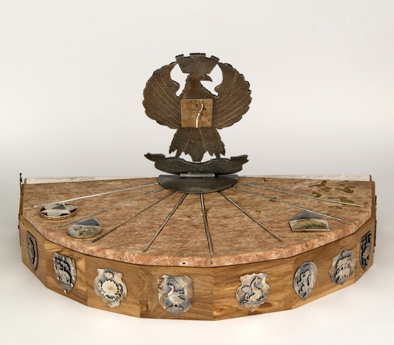Il Masgalano della Damiani è un lavoro carico di sfumature ed estro, capaci di aggiungere nuovi significati a questo prezioso dono. Così come è ricca di significazione l’aquila, lo stemma dell’Associazione, modellato in plastilina e realizzato in argento con la tecnica della cera persa, in parte smaltata per riproporre il cromatismo originario, e impreziosita da un rubino per rappresentare l’occhio vigile di tutti coloro che stanno al servizio dei cittadini. “Fra la gente. Per la gente”, come recita il motto dell’Associazione riportato sulla scultura.