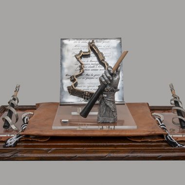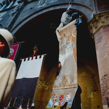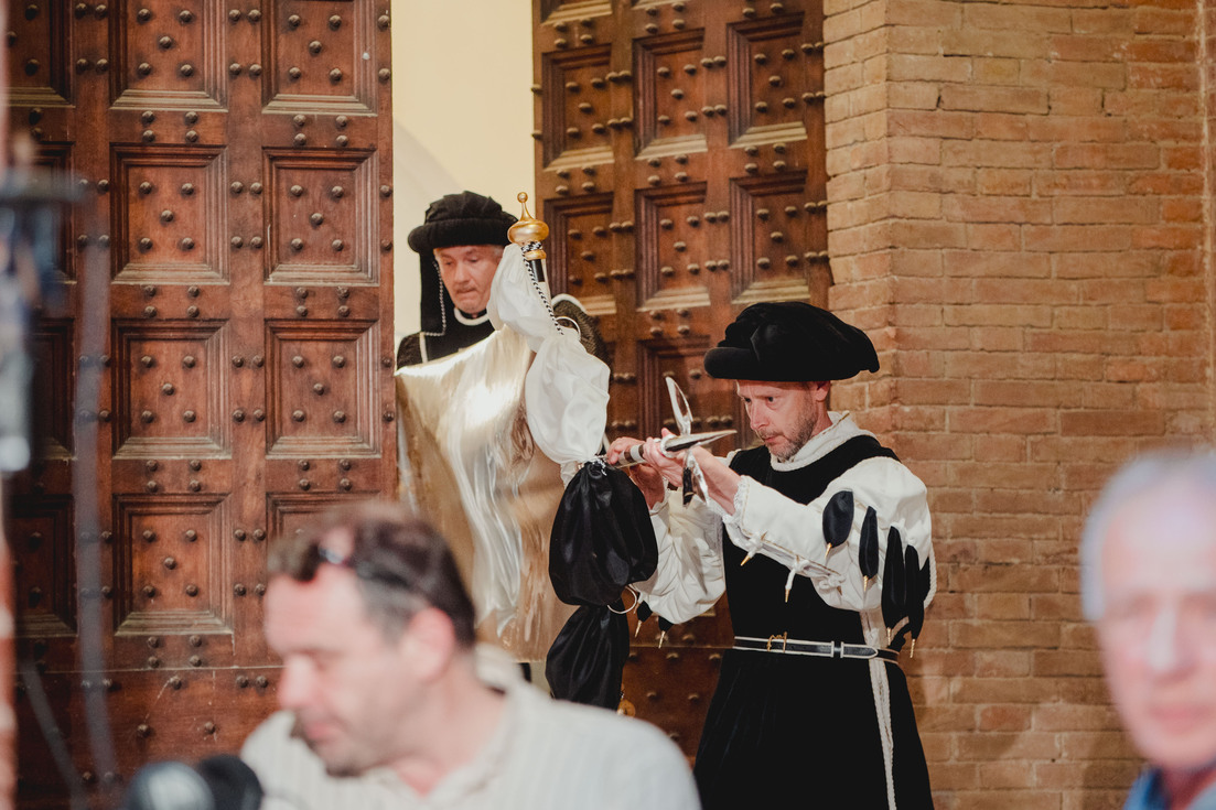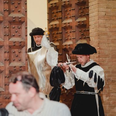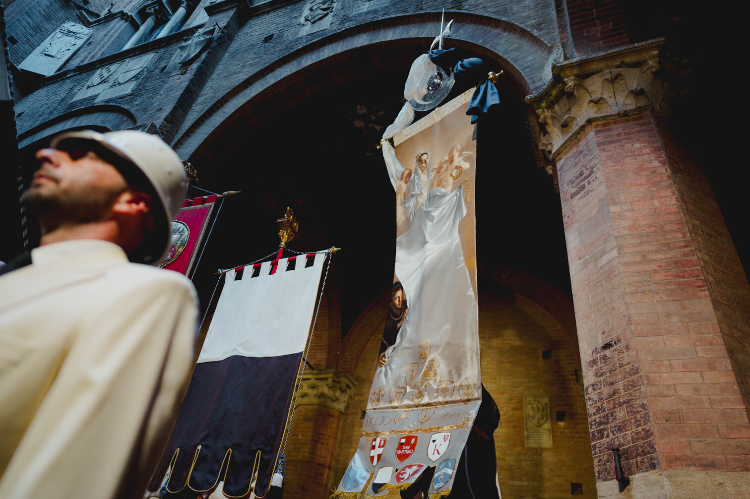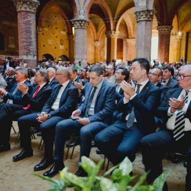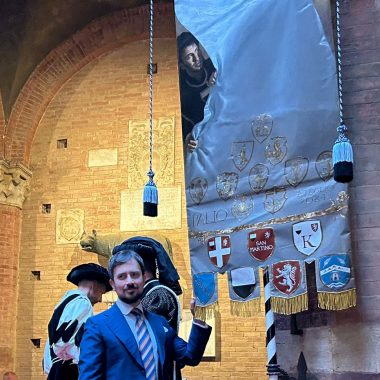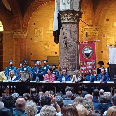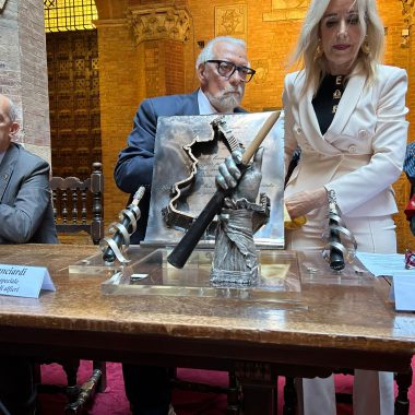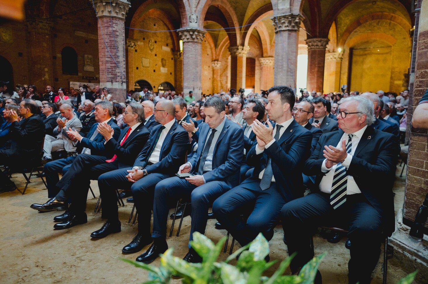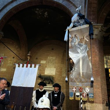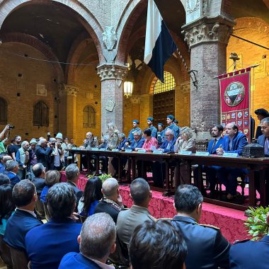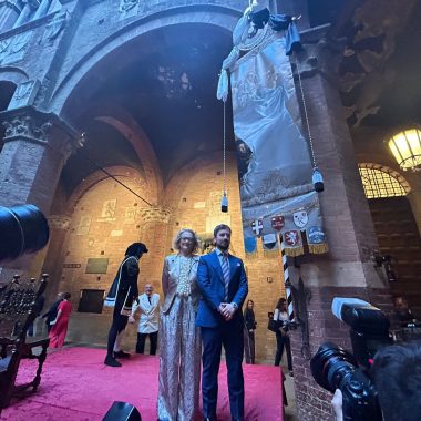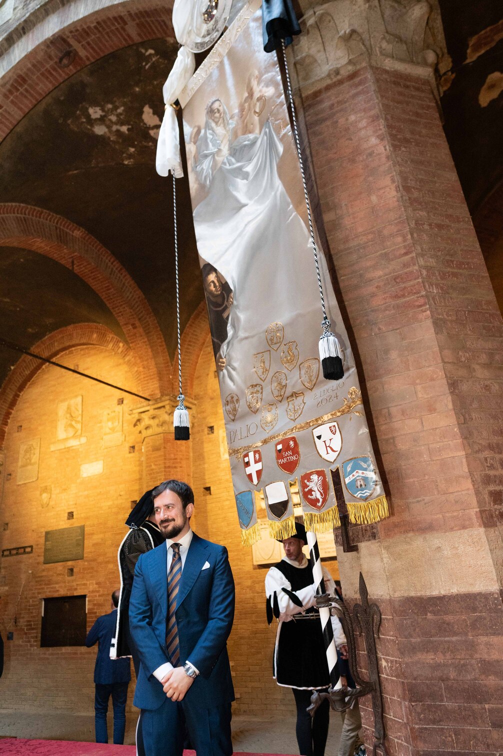 Nella nostra gallery alcune immagini della presentazione del drappellone del Palio di luglio 2024 realizzato da Giovanni Gasparro.