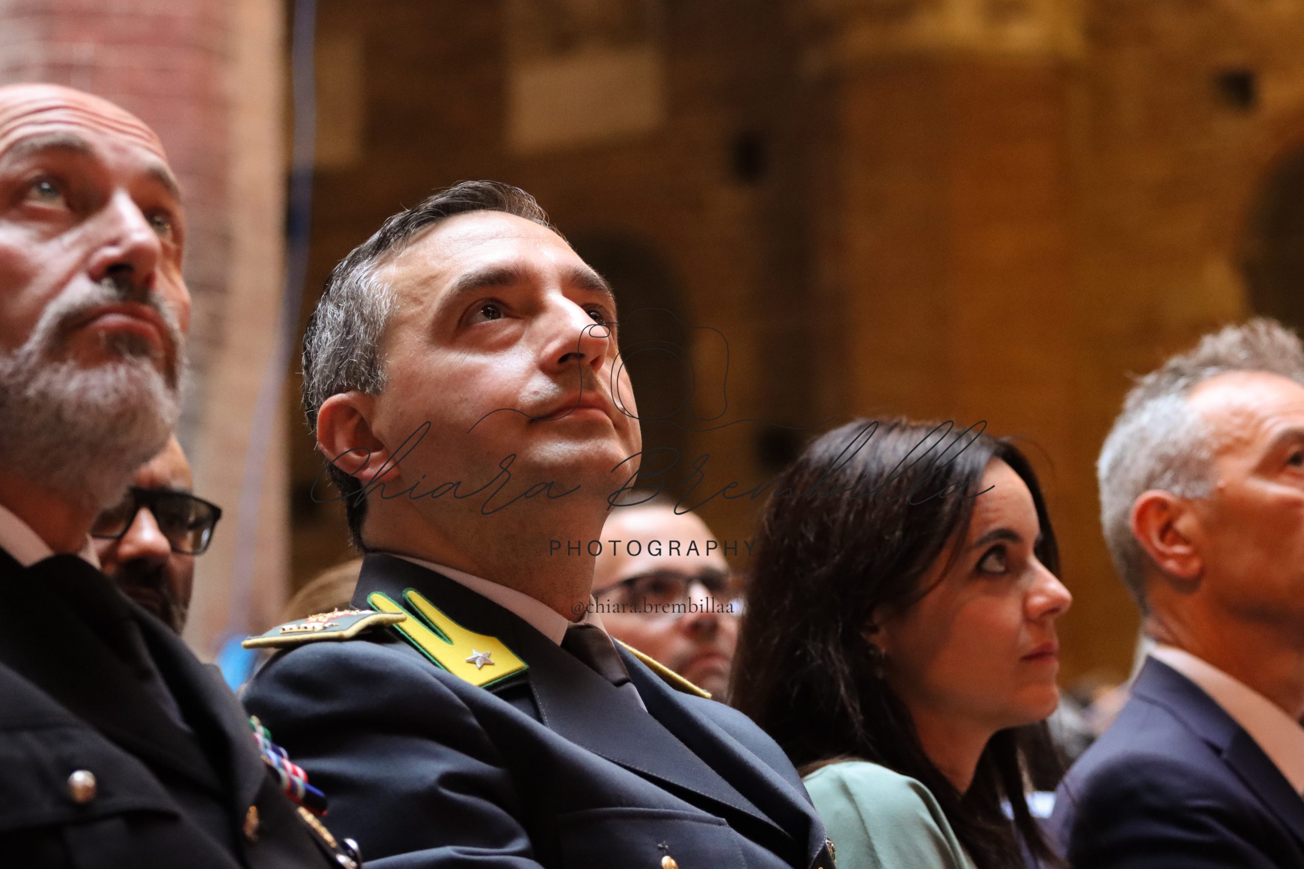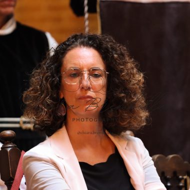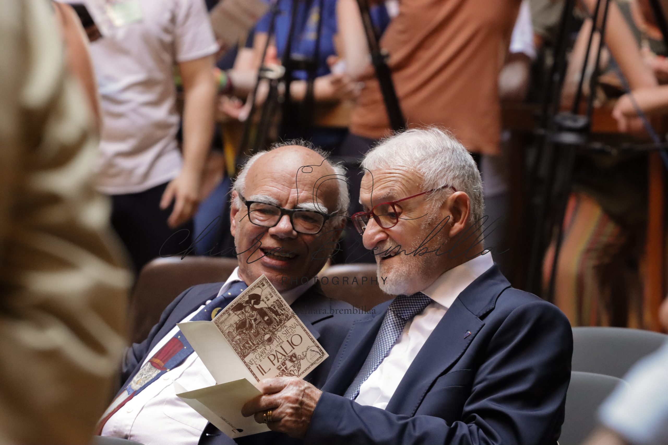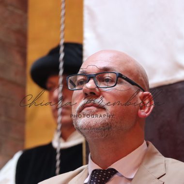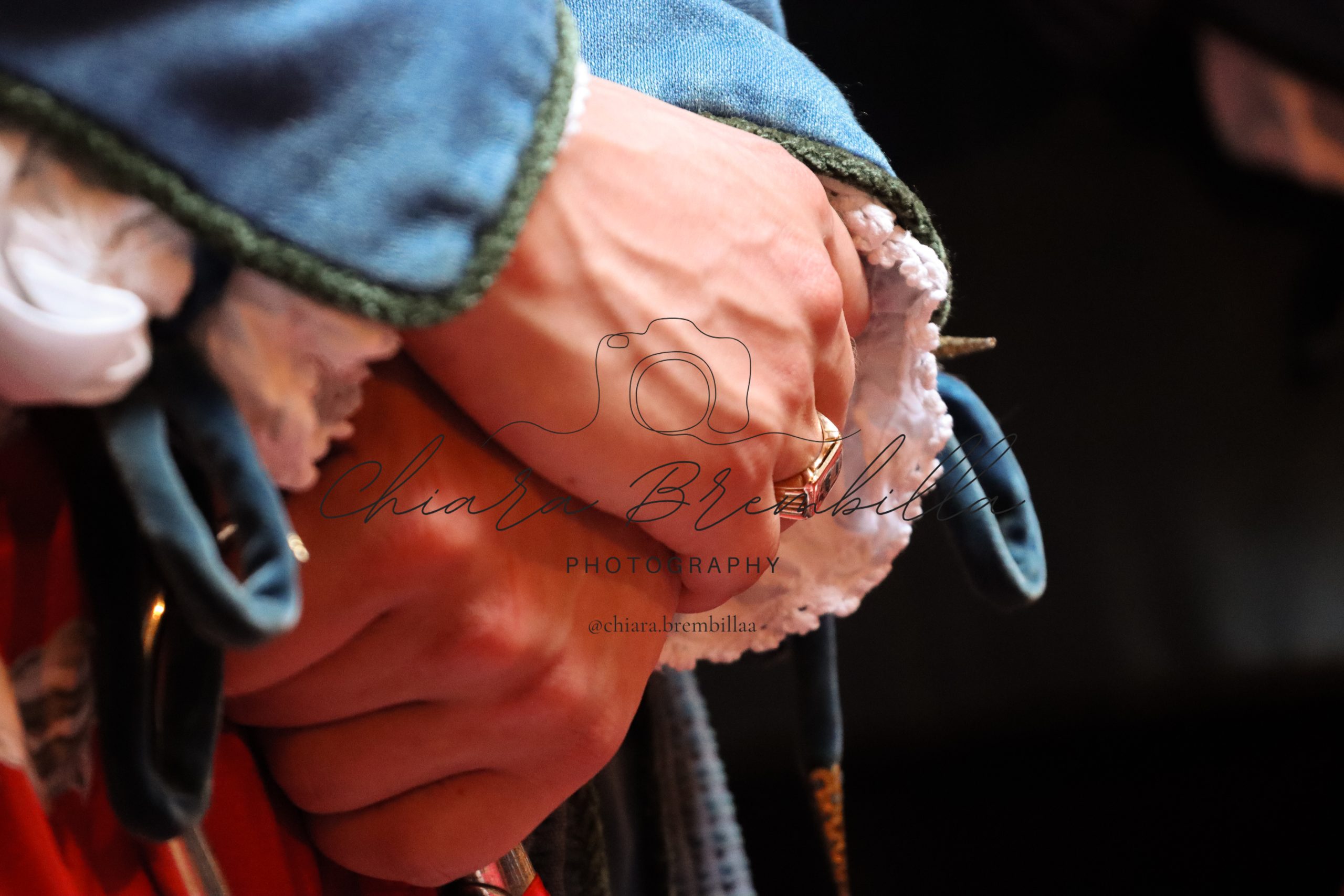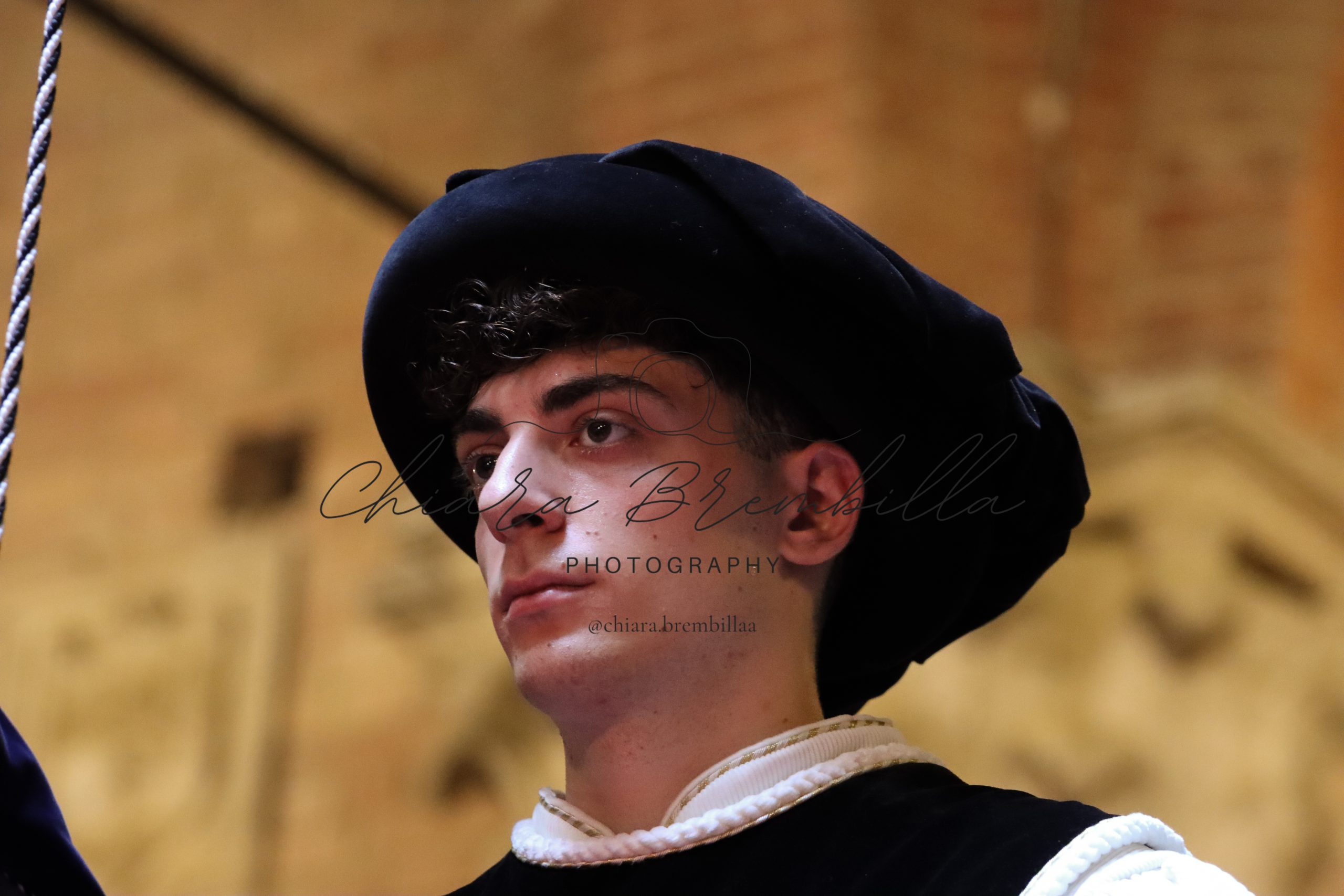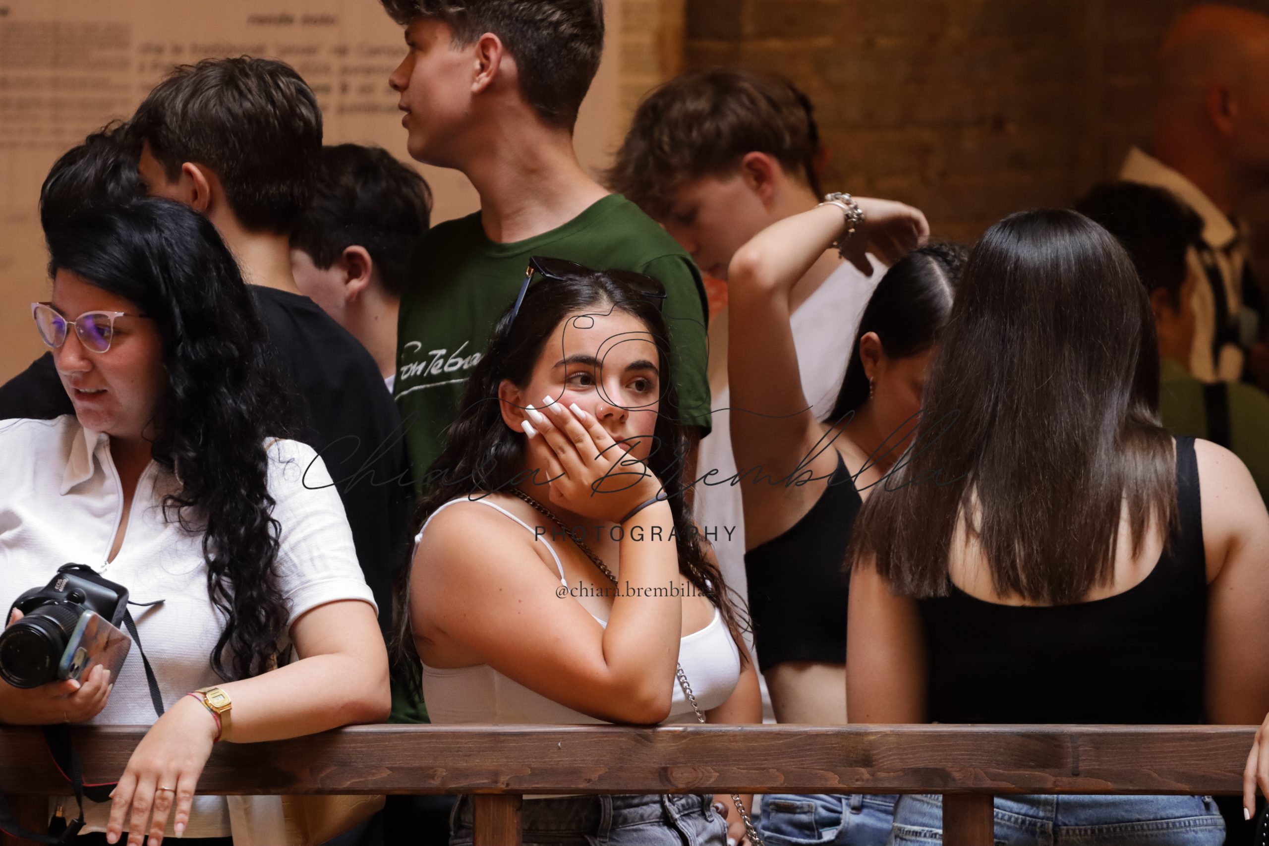 Un applauso convinto ha accolto il drappellone di Riccardo Manganelli, che è stato svelato durante il consueto e suggestivo appuntamento nel Cortile del Podestà. Nelle nostre immagini, scattate da Chiara Brembilla, alcuni momenti della presentazione