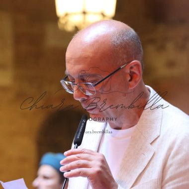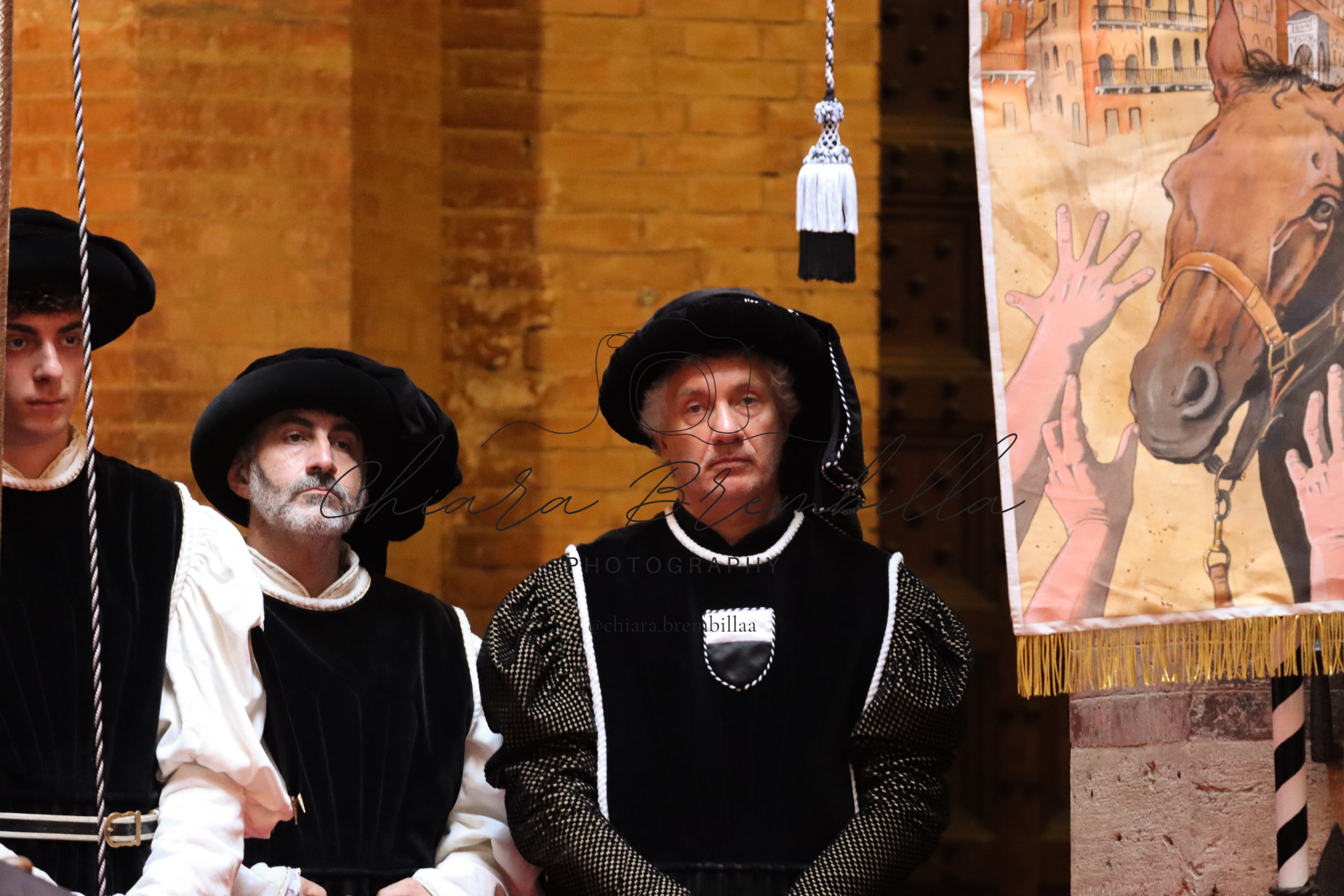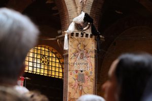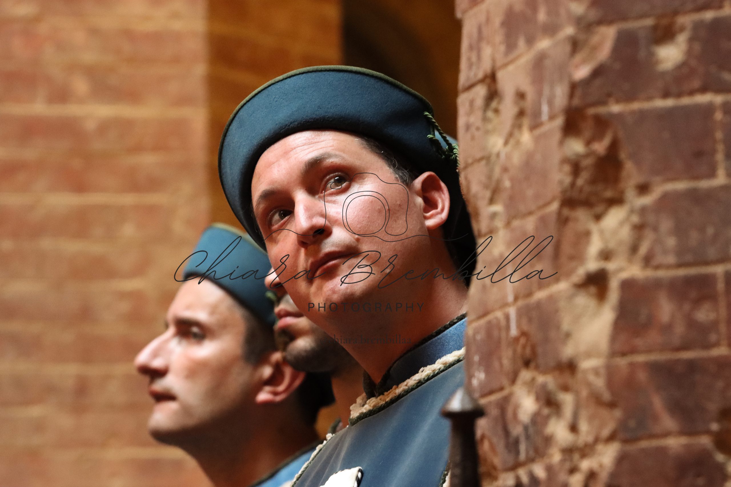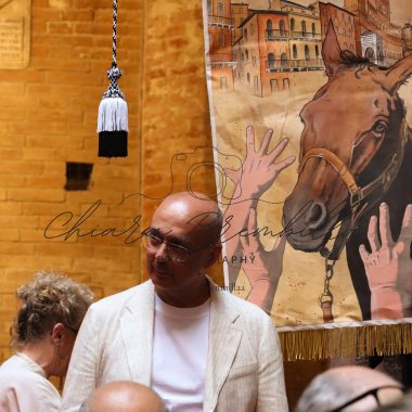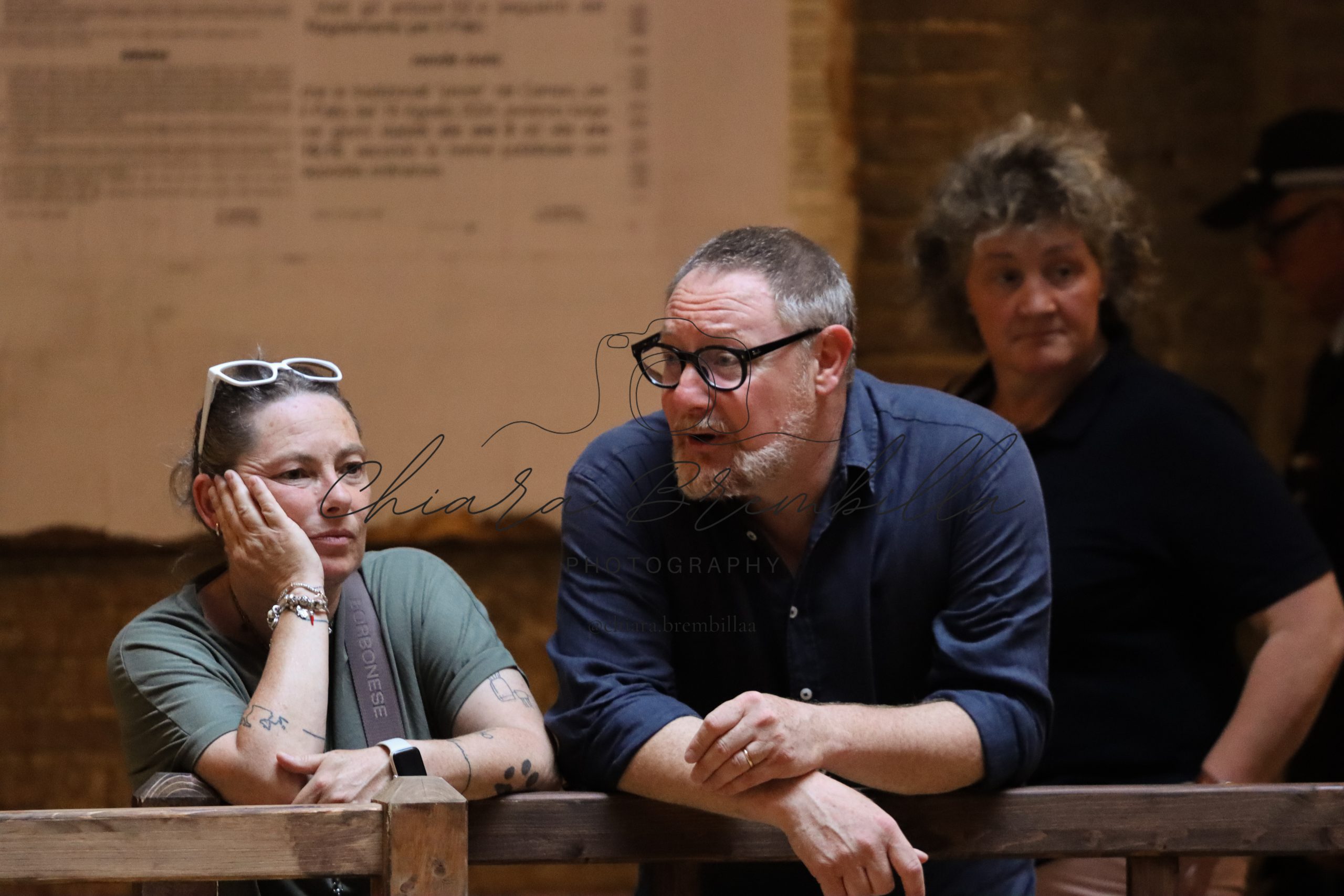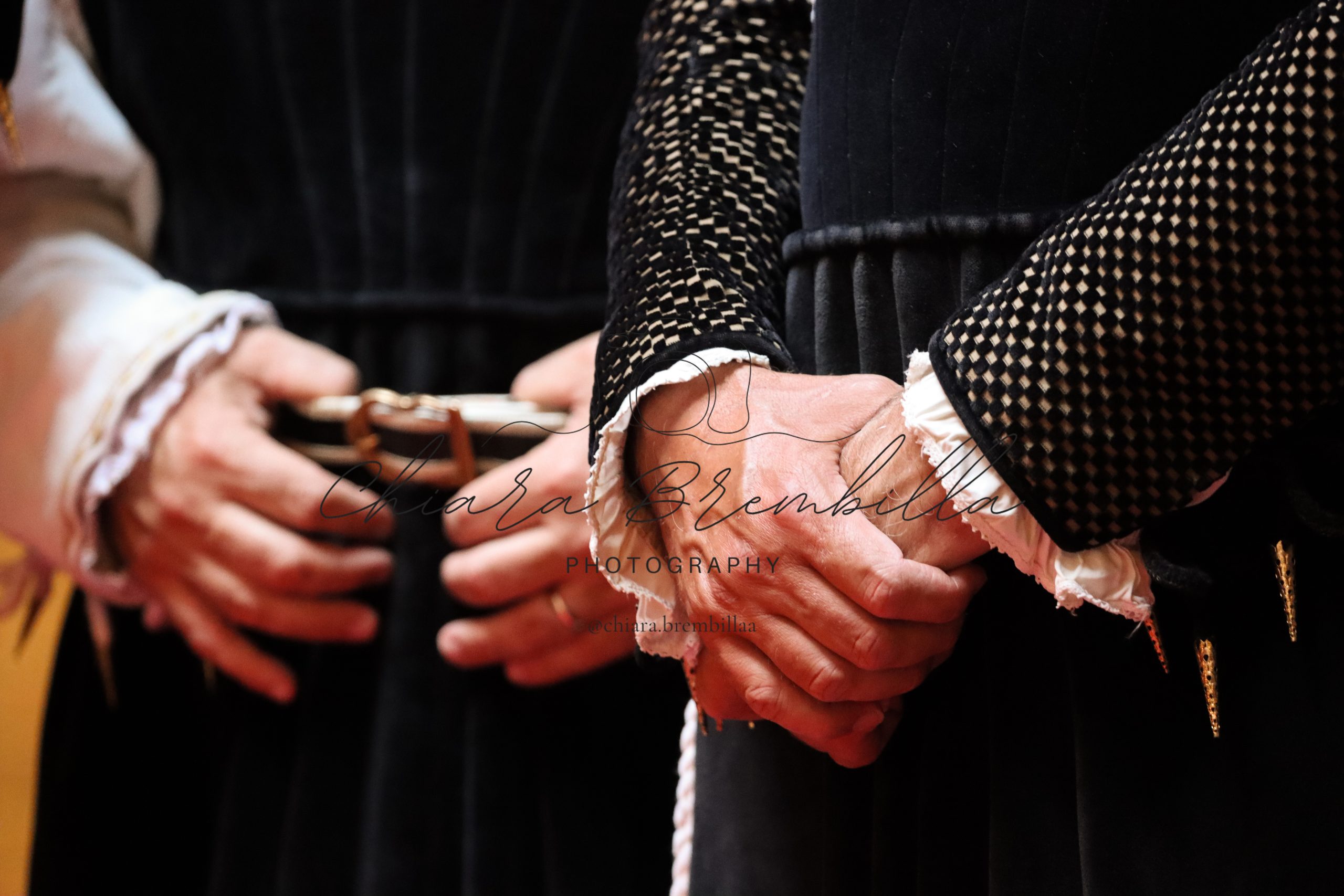 Un applauso convinto ha accolto il drappellone di Riccardo Manganelli, che è stato svelato durante il consueto e suggestivo appuntamento nel Cortile del Podestà. Nelle nostre immagini, scattate da Chiara Brembilla, alcuni momenti della presentazione