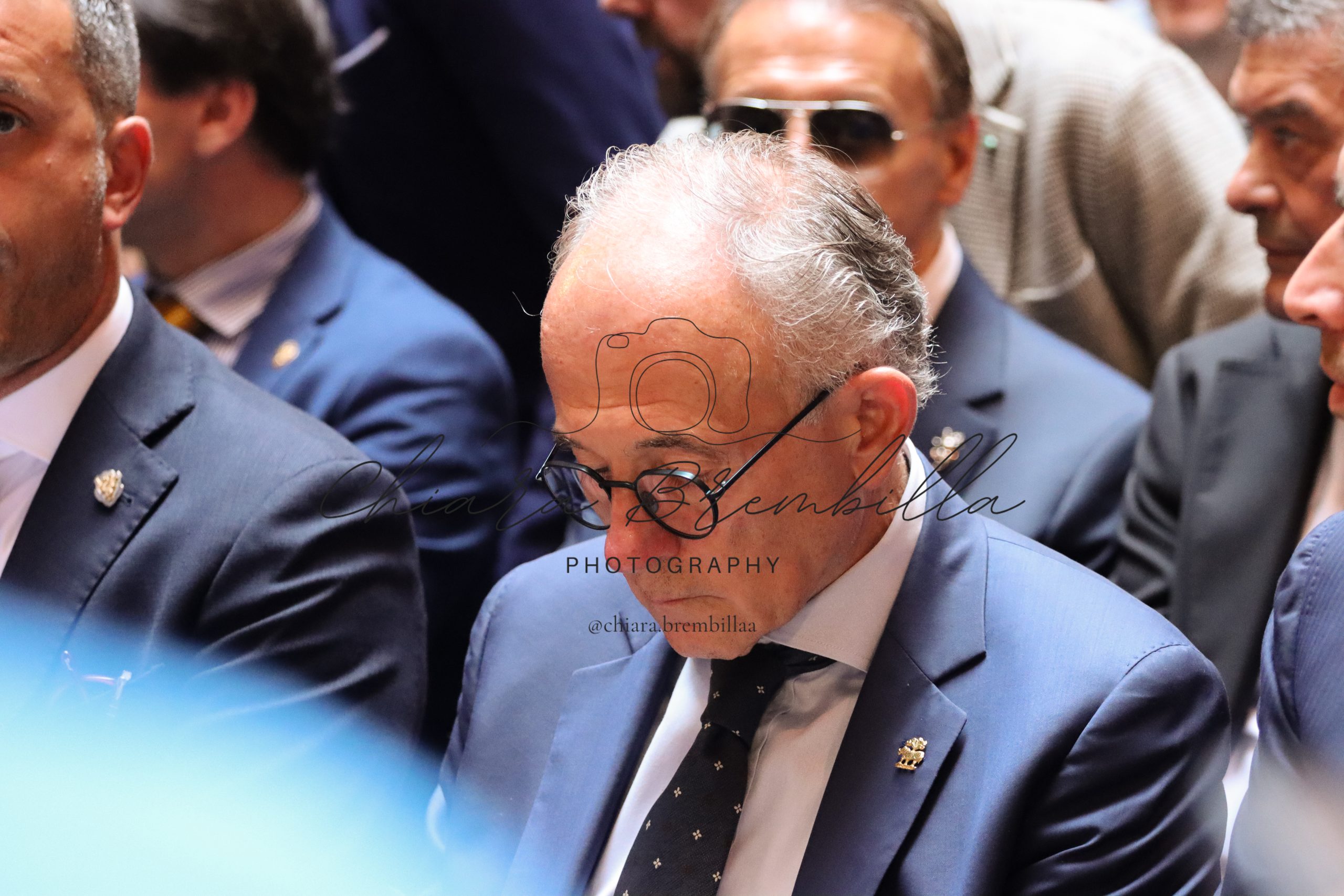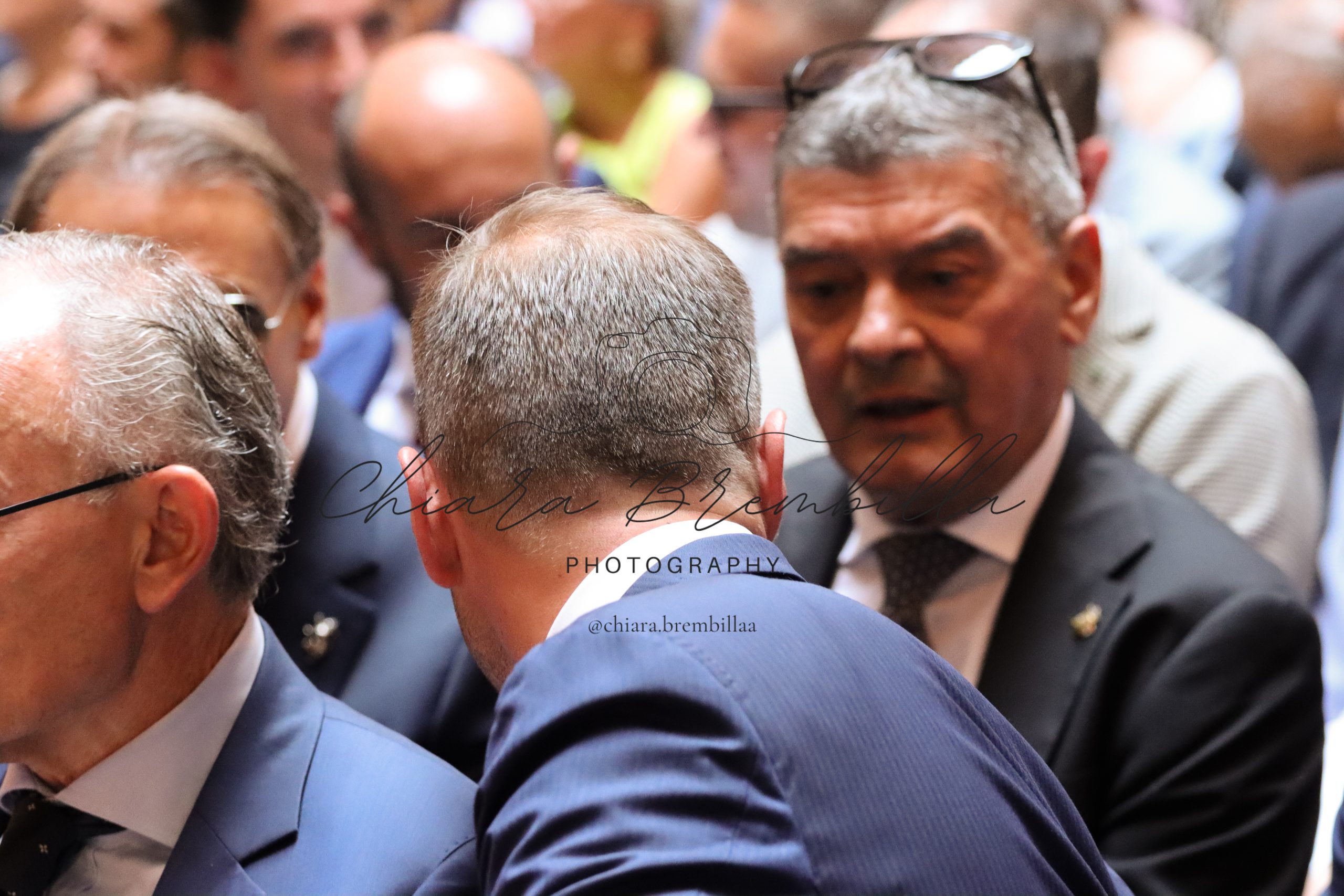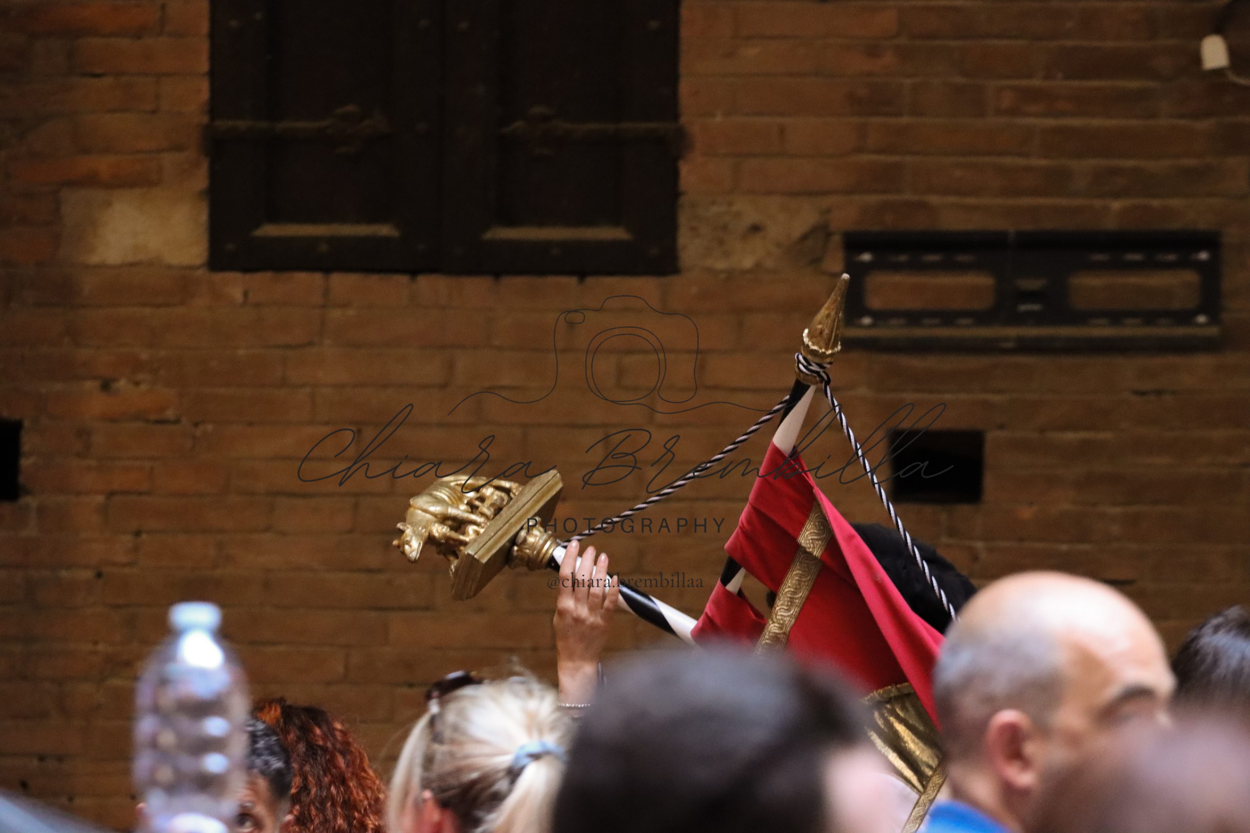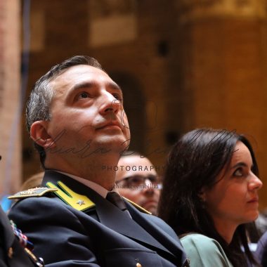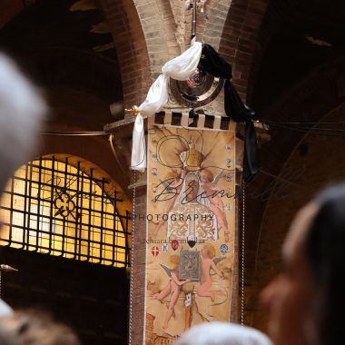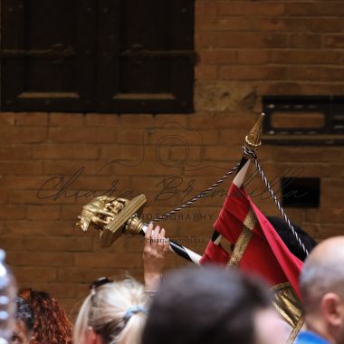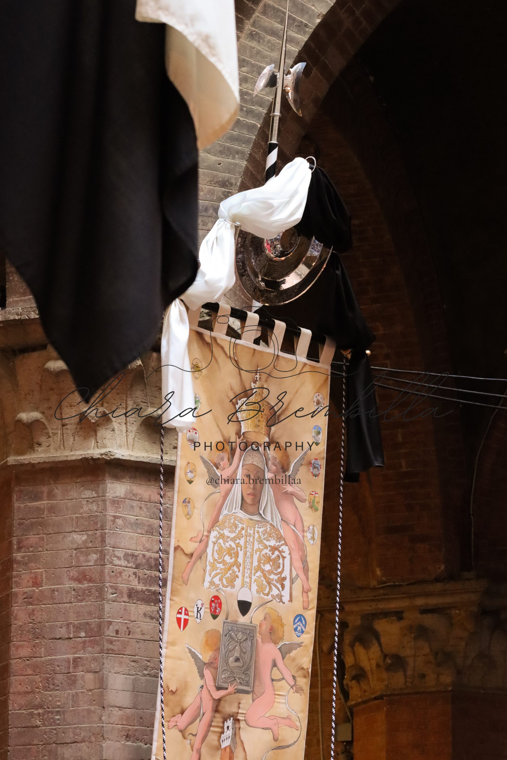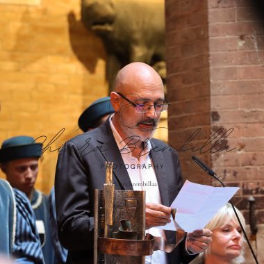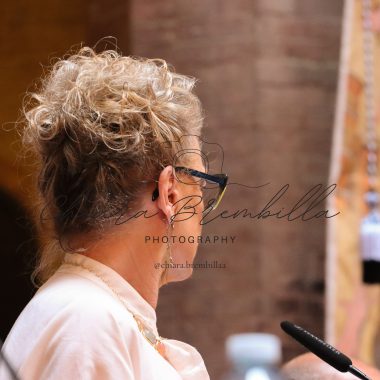 Un applauso convinto ha accolto il drappellone di Riccardo Manganelli, che è stato svelato durante il consueto e suggestivo appuntamento nel Cortile del Podestà. Nelle nostre immagini, scattate da Chiara Brembilla, alcuni momenti della presentazione