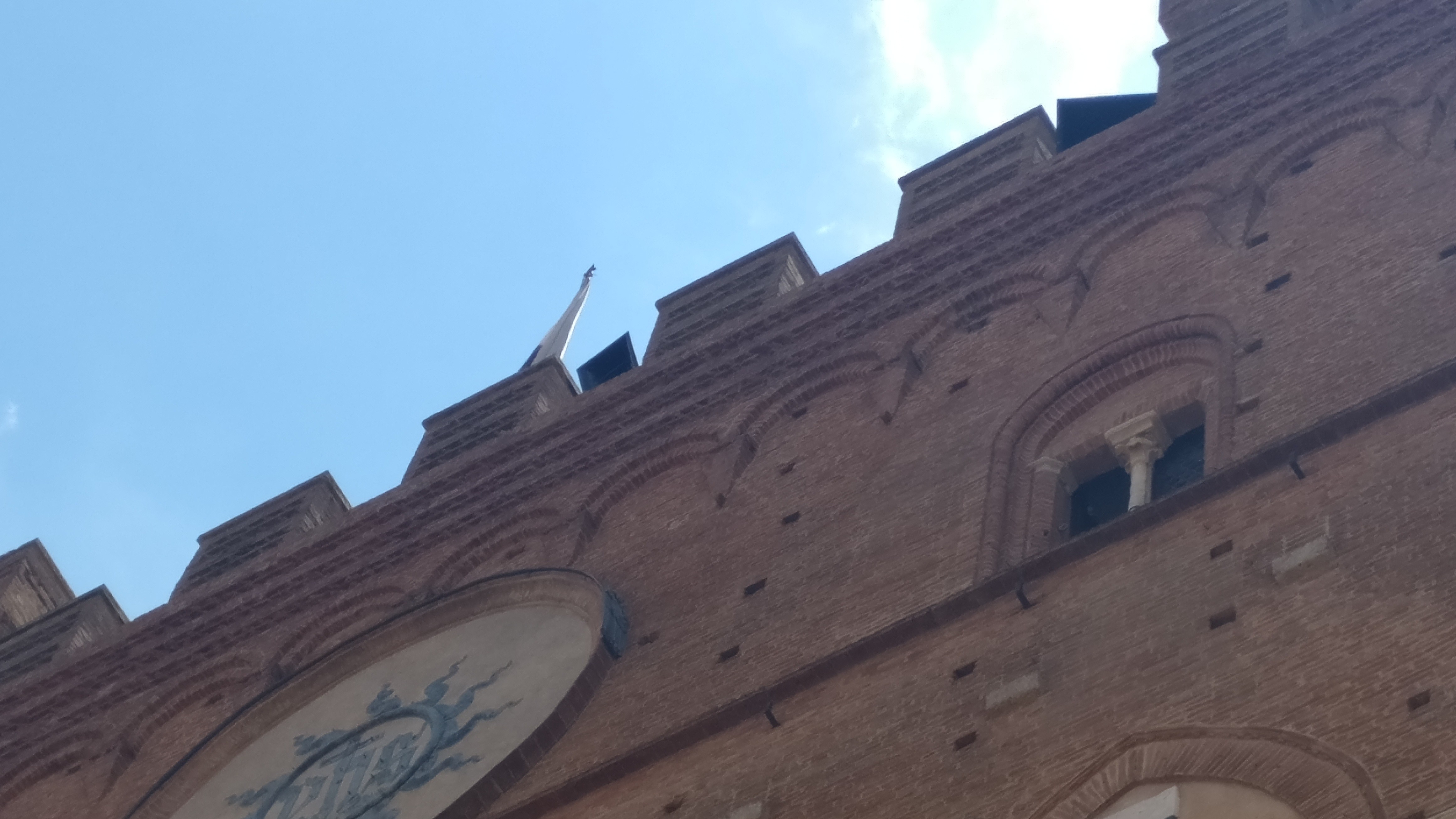 Prove per gli altoparlanti posizionato tra i merli del palazzo comunale.