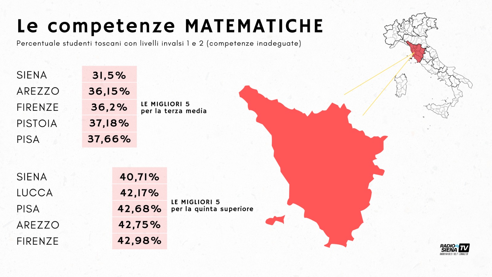 – SIENA 32,2% (per la terza media) e 31,5% (per la quinta superiore)