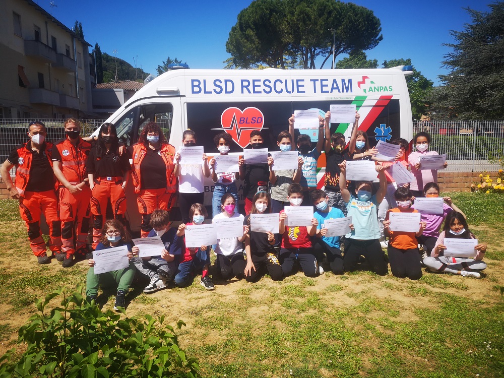 In classe sono stati presenti Antonella Checcucci e Raffaella Russo, entrambe rappresentanti dei volontari, e poi i volontari Fabio Galanti, Alessia Giannini e Giulia Moni. “La cosa più bella – fa notare Checcucci – è la nostra soddisfazione nel vedere la felicità dei bambini nel provare l’esperienza del primo soccorso. Dopo aver ricevuto l’attestato, ci hanno detto di voler venire a fare soccorso. Sono stati tutti molto incuriositi, soprattutto alla vista e alla visita dell’autoambulanza”. Non a caso a scuola è stata portata anche la macchina del soccorso.