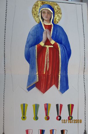 “Ecco, mi scusi, sa, ma è la mia professione… Non mi è ben chiara la dislocazione della Madonna: credo sia questo grumo color turchese, il mantello suppongo, che è molto bello ma non è proprio il punto di azzurro previsto dal Regolamento, articolo 4 comma c. E poi non vedo la corona. Non solo: la Madonna sta troppo in basso. Mentre, Lei mi insegna, essendo assunta in cielo dovrebbe stare in alto, sopra le nuvole. E poi, mi scusi ma non vedo i cavalli: questi così magistralmente accennati mi sembrano tori. Eh sì, hanno le corna…”