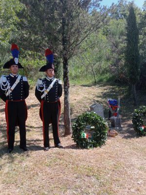 Oggi, 4 giugno 2024, in località San Piero in Campo, alla presenza del sindaco di Radicofani e Pienza, del Presidente della Provincia, dei Sindaci del comprensorio, del Comandante Provinciale dei Carabinieri di Siena e dei Carabinieri della Compagnia di Montalcino, del Comandante Provinciale della Guardia di Finanza e del Comandante del 186° Reggimento Paracadutisti, si è svolta la cerimonia di deposizione di una corona sul luogo dell’eccidio del Carabiniere Vittorio TASSI e dell’aspirante Allievo Carabiniere Renato MAGI, entrambi partigiani combattenti uccisi dai tedeschi durante la resistenza, esattamente 80 anni fa, nel cuore della Val d’Orcia.