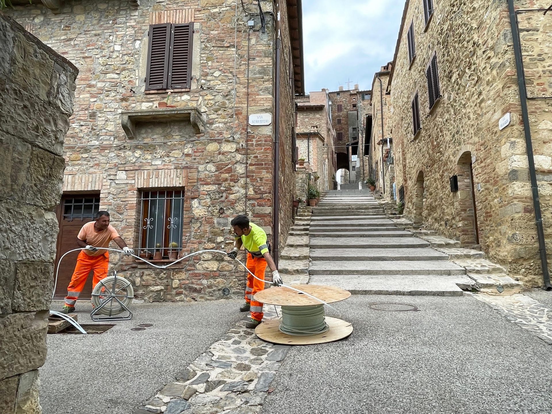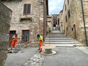 Nella foto Radicondoli mentre lo scorso anno veniva stesa la fibra