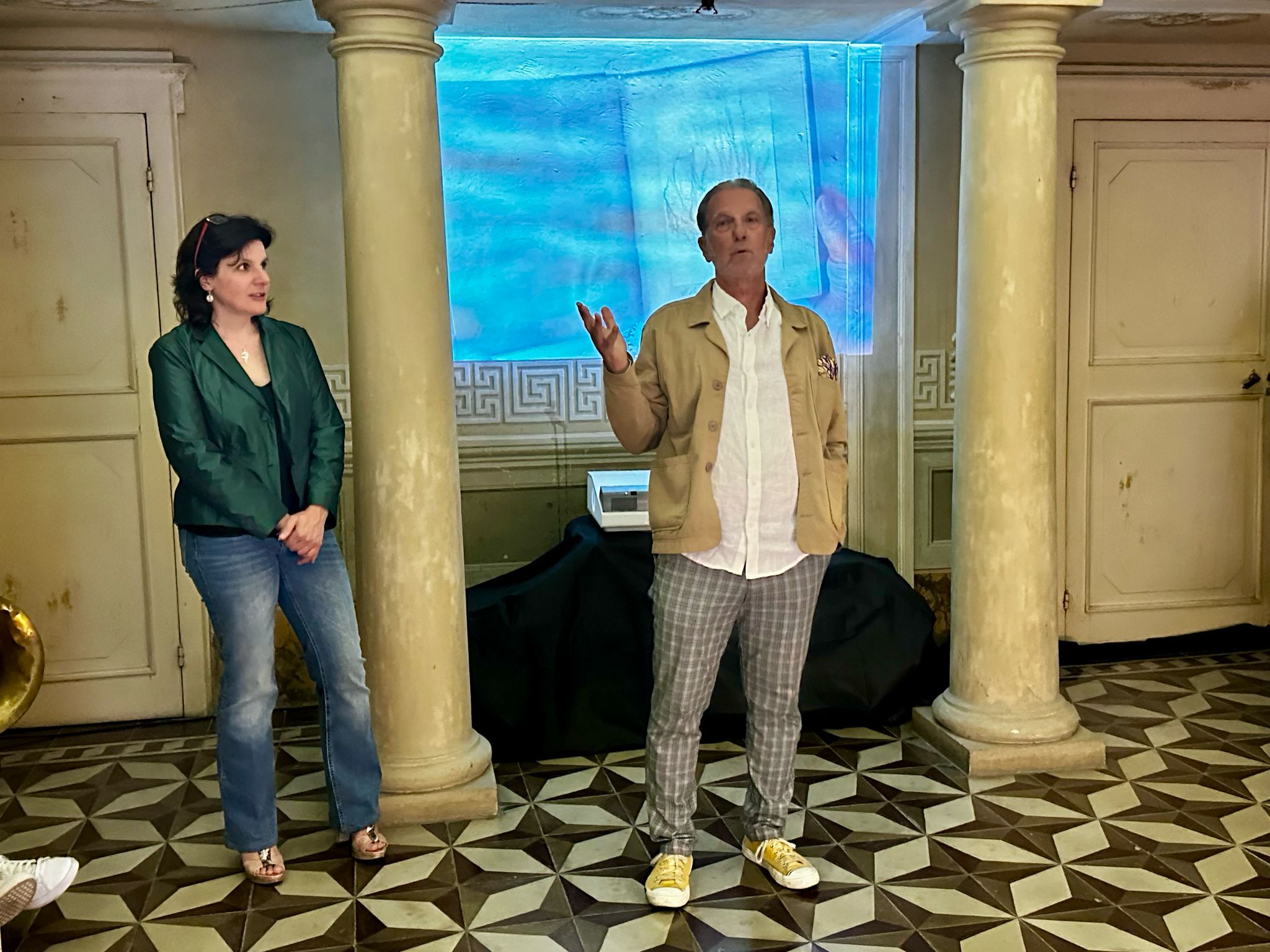 “Come ci hanno fatto notare artista e curatore, Found Adrift, non è solo una mostra, è un rito collettivo di riapertura. È l’incontro tra un artista e una comunità che ha scelto di riscoprire uno dei suoi luoghi più intimi e di farlo attraverso l’arte contemporanea – dice Roberta Cecco, assessore alle Politiche Culturali del Comune di Radicondoli – L’opera ascolta il luogo, lo esplora, lo interroga e lo riscrive. Intento perfettamente riuscito. E’ nella sala da ballo con orchestra, sorretta da colonne e adornata da motivi floreali monocromi e ritratti ovali, che l’installazione prende forma, nel punto esatto in cui il tempo, che è protagonista, sembra essersi fermato”.