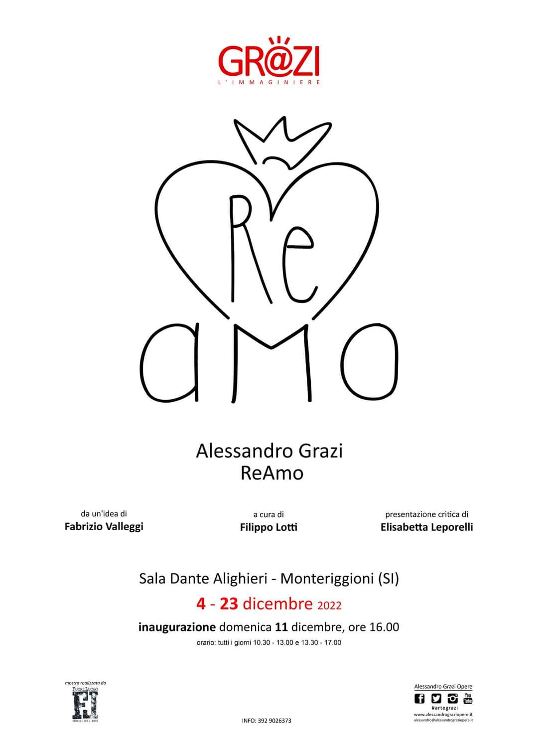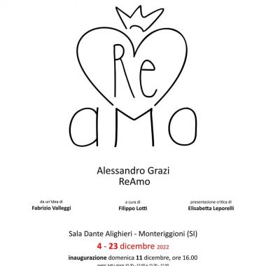 E’ visitabile fino al 23 dicembre, presso la sala Dante Alighieri a Monteriggioni, la mostra ReAmo, di Alessandro Grazi, che verrà inaugurata ufficialmente domani. L’artista senese, già protagonista del Drappellone del Palio del 2 luglio 2007, è intervenuto per un saluto in diretta a Buongiorno Siena.