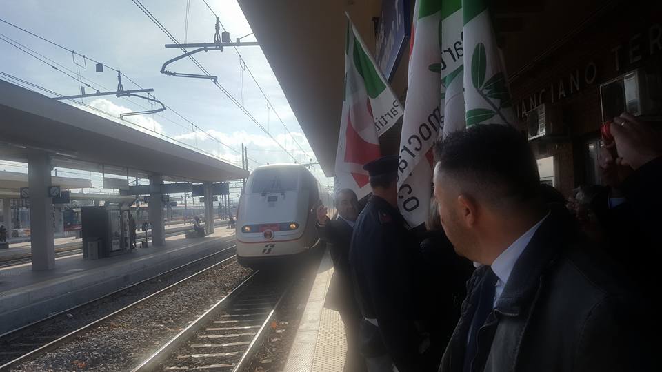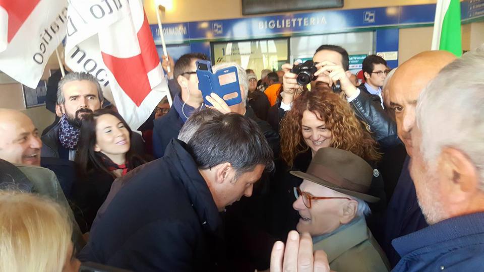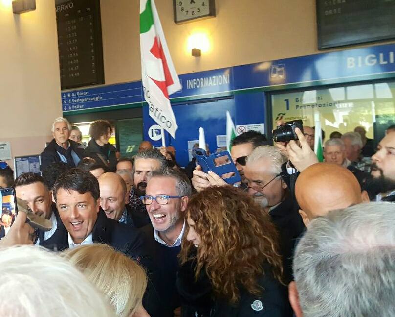 Tanta gente, e anche la consueta ironia, ad accogliere Renzi giunto stamattina con l’Intercity di “Destinazione Italia” alla stazione di Chiusi Scalo. La delegazione dem locale (capitanata da Scaramelli, Bettollini e La Russa) ha accolto alla grande il segretario Pd, insieme a molti cittadini. Ad attenderlo, oltre al calore dei suoi, anche un ironico striscione: “Benvenuto Mat. Black Friday, tre salami al prezzo di uno”.