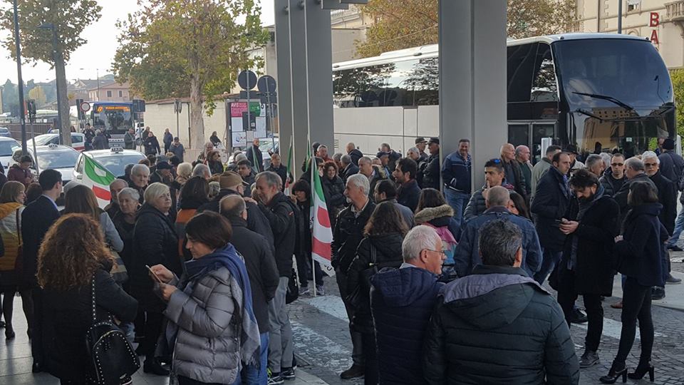Grande accoglienza per il segretario Dem ma anche uno striscione graffiante