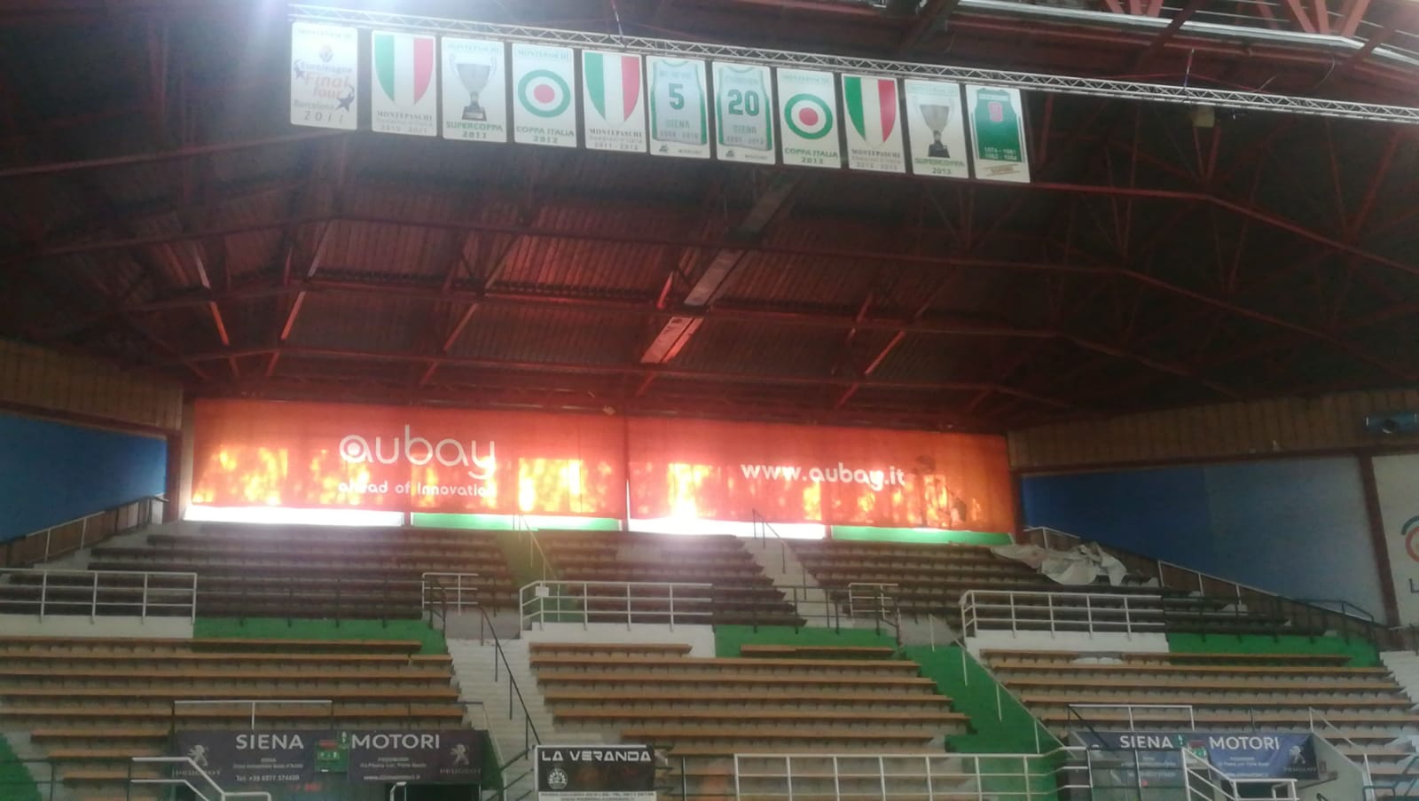 Le scritte “Montepaschi Siena” non campeggeranno più sugli spalti del PalaEstra di viale Sclavo. Nella giornata di oggi sono state rimosse e sostituite con quelle di Aubay, nuovo sponsor.