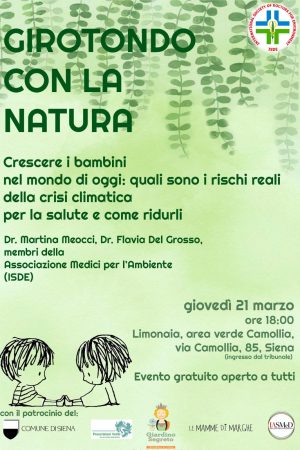 Si ricostituisce a Siena, grazie all’impegno di neo medici e mediche senesi, l’Associazione Medici per l’Ambiente- ISDE Italia. Per l’occasione è stato organizzato un incontro pubblico dal titolo “ Girotondo con la natura. Crescere i bambini nel mondo di oggi: quali sono i rischi reali della crisi climatica per la salute e come ridurli”.