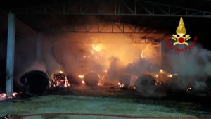 I vigili del fuoco del comando di Siena stanno intervenendo nel comune di Chiusdino, localitá Frassini, per un incendio che sta interessando un capannone agricolo contenente rotoballe.