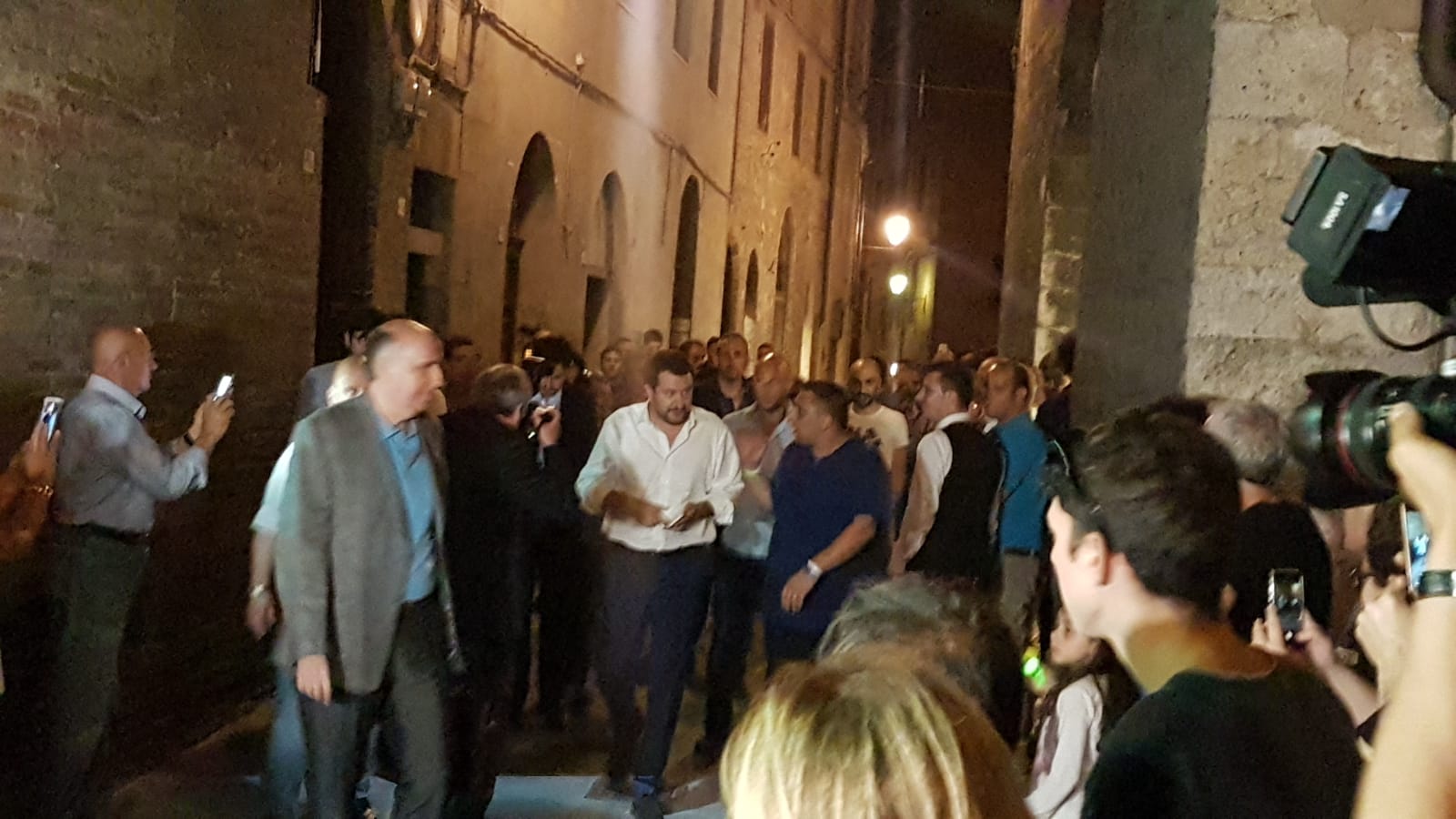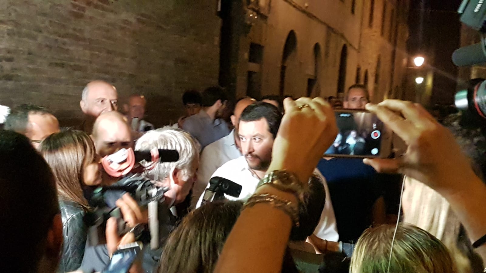 Sul palco di una gremita piazza Indipendenza insieme al candidato sindaco Luigi De Mossi, la senatrice sangimignanese Tiziana Nisini e i vertici regionali leghisti, Matteo Salvini ha parlato alla folla presente in vista delle Amministrative: “Il 10 giugno – ha detto – liberate Siena dalla catastrofe Pd e della sinistra. C’è una banca sopravvissuta alla peste ma non al Pd, c’è gente che ha rubato miliardi ai senesi, raccomandati in Comune o Provincia. C’è una persona che si lancia dal suo ufficio e rimane a terra senza un motivo, con la gente che passa vicino. La Lega farà in modo che le tradizioni vengano preservate, viva il Palio”.