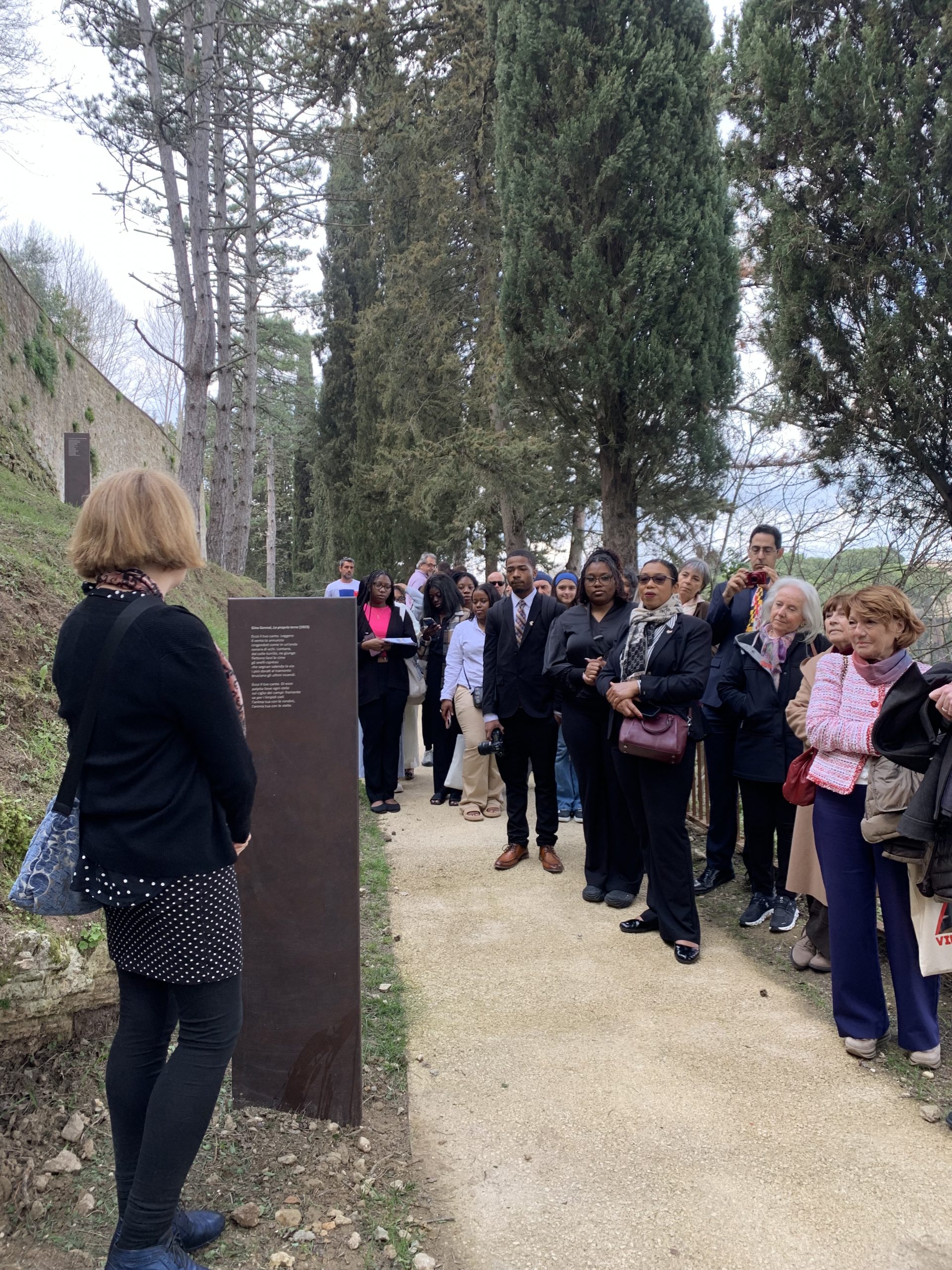 La Passeggiata Poetica di San Gimignano è stata curata da Natascia Tonelli, professoressa di Letteratura Italiana presso l’Università di Siena e da Elisa Biagini, poeta fiorentina edita da Einaudi. Il progetto è stato realizzato dagli Architetti Alberta Chiari e Flavio Cassarino.