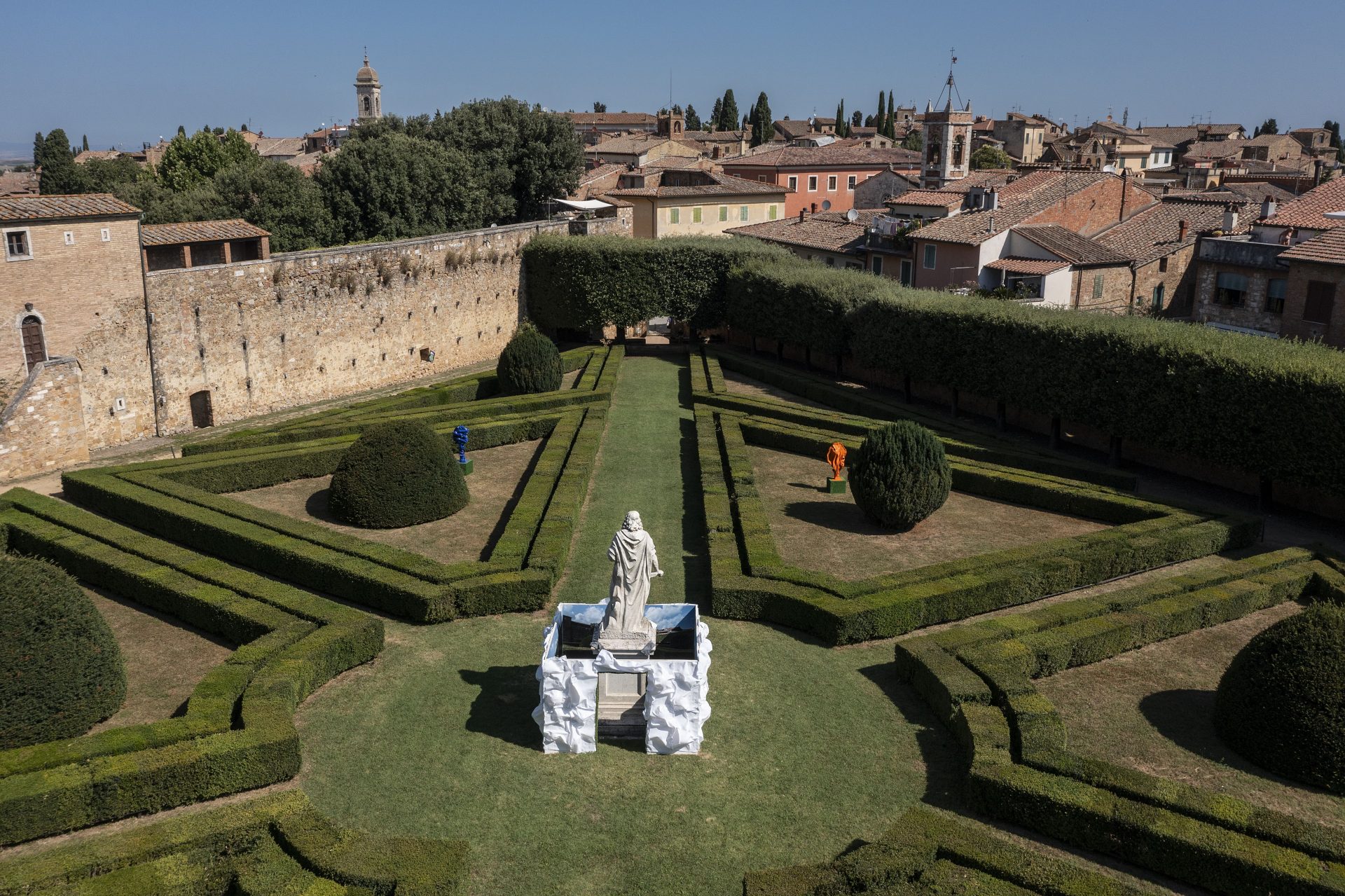 Il percorso espositivo, che rimarrà visitabile fino al 3 novembre, attraversa le vie e le piazze del centro storico di San Quirico e si sviluppa nel palcoscenico naturale degli Horti Leonini e nelle sale di Palazzo Chigi e di fronte alla Collegiata. Nella sua interezza la mostra di Stefania Vichi per Forme nel Verde 2024 – Comfort Zone – è composta da venti opere, tra sculture e installazioni monumentali. Una parte delle opere allestite all’interno di Palazzo Chigi sono poste in dialogo con una serie di sculture di studenti delle Accademie di Belle Arti italiane e con una collezione privata di grande valore storico-artistico di ceramiche antiche e moderne esposte al pubblico per la prima volta.
