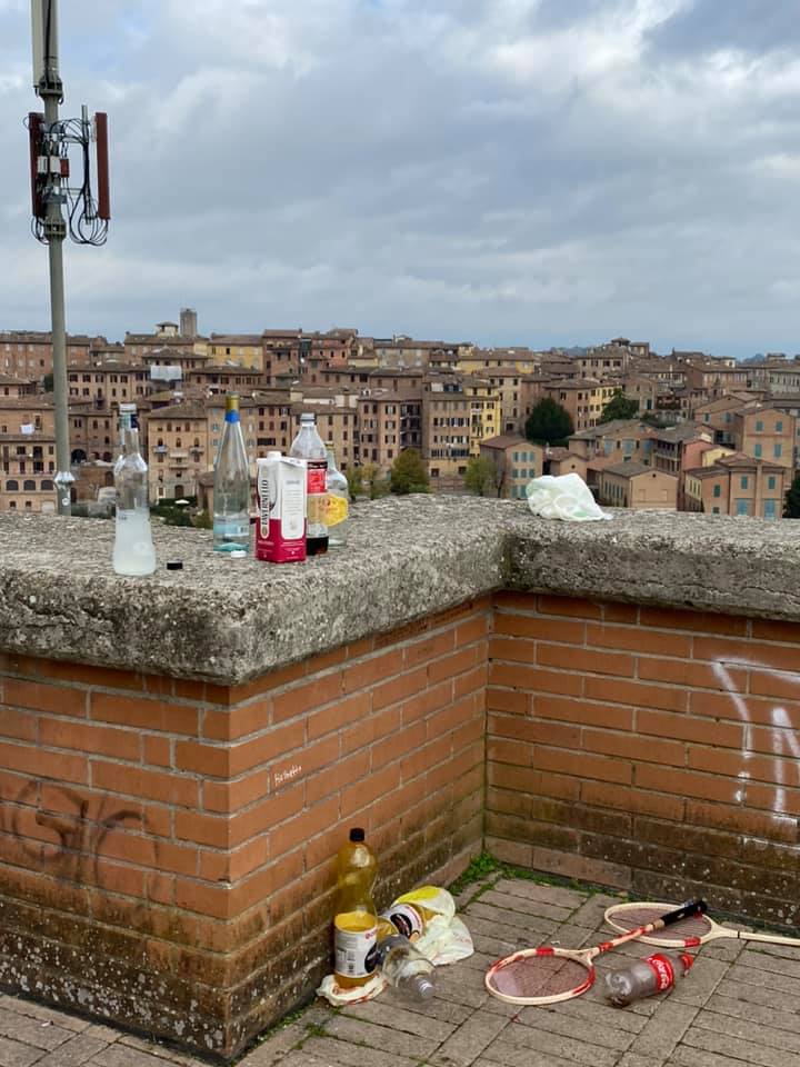 Nella notte appena passata, un tripudio di fumo, alcol, urla, lancio di piccoli petardi, atti vandalici a danno delle auto: l’indomani i residenti e cittadini si sono trovati di fronte uno spettacolo sconcertante in termini di sporcizia e degrado, con l’Orto dei Tolomei divenuto teatro di una festicciola improvvisata ed inondato da bottiglie abbandonate, cartacce e mozziconi di sigarette.