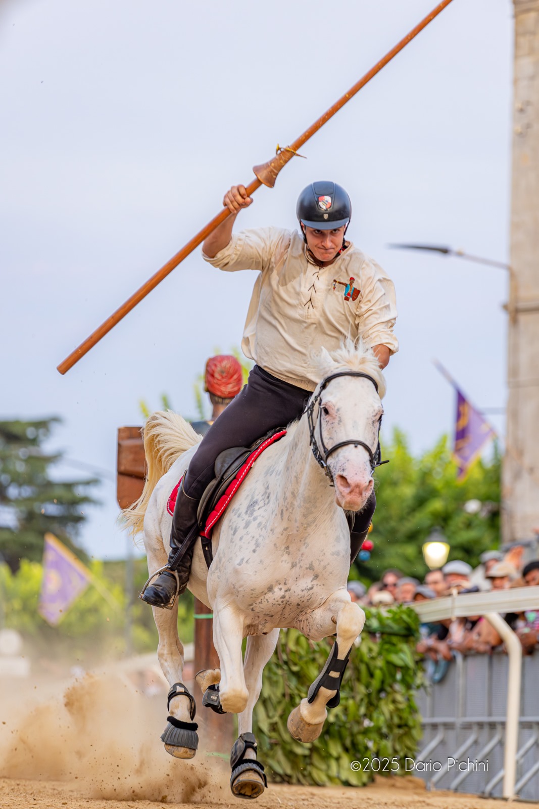 Festa grande per la contrada di San Lorenzo che vede il suo giovane fantino, ma il cui talento si dimostra sempre più importante, portare i colori bianco rossi nuovamente alla vittoria. Una giostra che nonostante il dubbioso tempo si è dimostrata certa fin dall’inizio, Luca Betti insieme alla cavalla Shakira ha infatti totalizzato cinque anelli su cinque, senza mai dimostrare ansia e paura, rimanendo lucido e sicuro di sé, forte della vittoria dello scorso anno e del nome che lo accompagna.